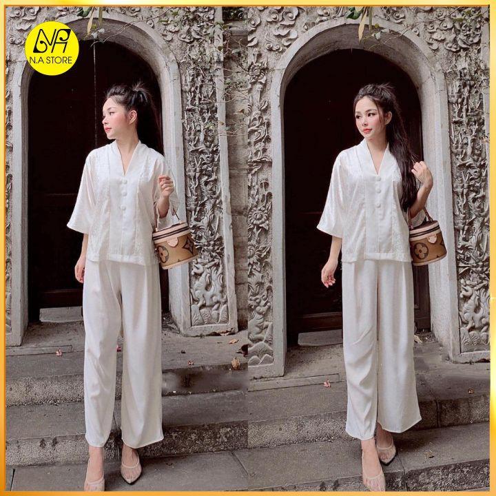 LỤA SEN SANG TRỌNG Chất liệu vải lụa cao cấp mềm mướt_ không xổ lông _ dày dặn kiểu dáng đơn giản, thanh lịch kết hợp quần ống rộng tạo nên sự sang trọng Sản