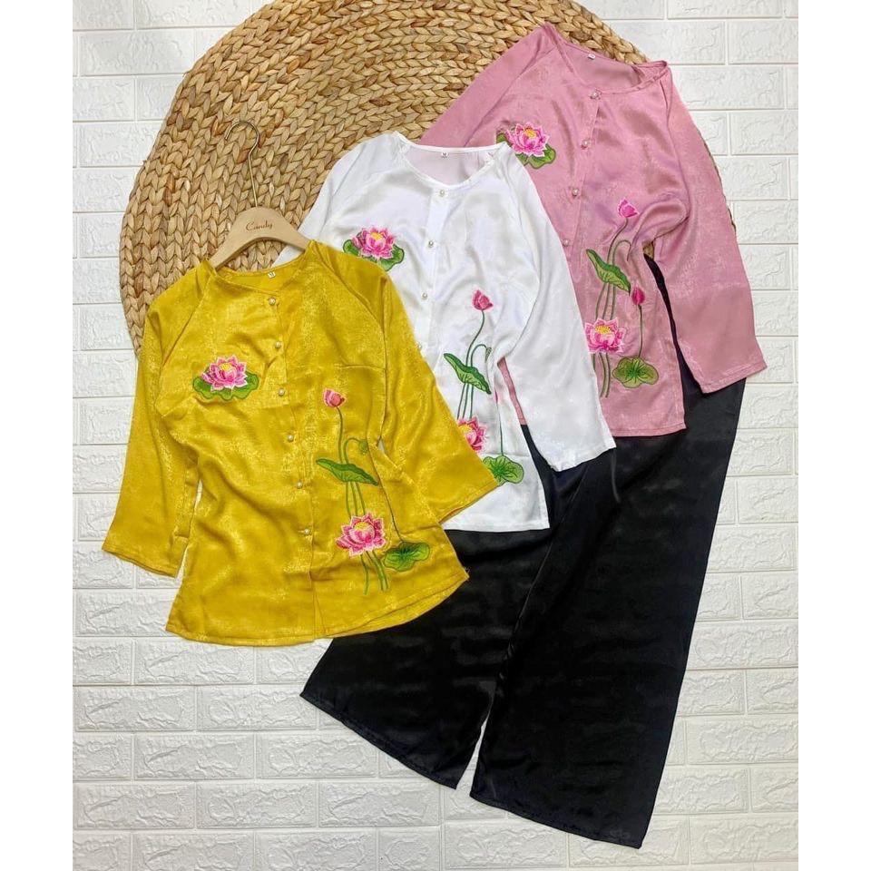 Chất Vải Lụa Pháp Cao Cấp Hoặc Vải Gấm Tuỳ Màu Và Size Nên Chất Vải Khác Nhau Quần Ống Rộng Cổ Áo Chui Không Cài Nút BÁN LẺ GIÁ SỈ Chú Ý Khi Đặt