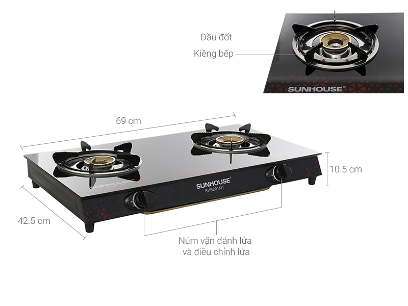 Điếu bằng inox 430 dày bền, chắc chắn Sen chia lửa bằng nhôm Sử dụng thay thế cho các dòng bếp mặt kính, mặt inox phổ thông có giá trị thấp dưới 500k Hình bếp