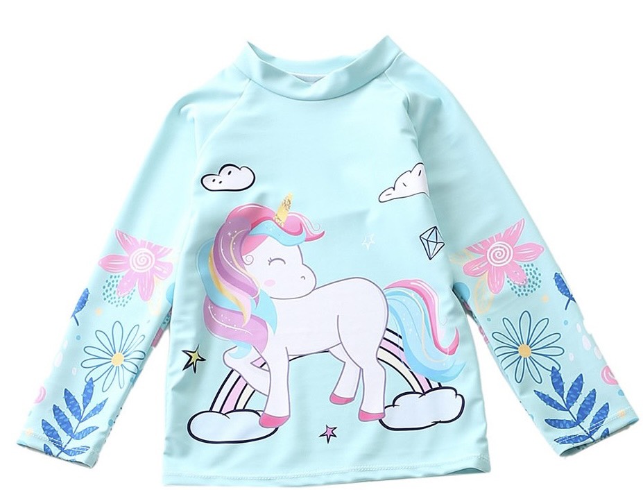 Đồ bơi bé gái liền thân dài full body chống nắng, chất vải mềm mại, họa tiết kỳ lân rất được các bé yêu thích. Chất liệu vải thun co dãn tốt, thoát nước nhanh