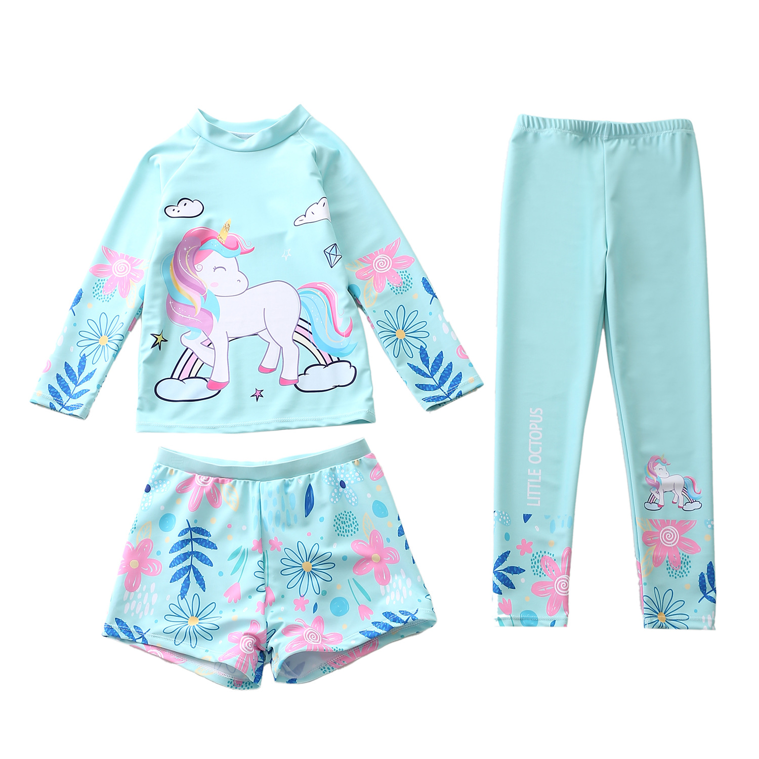 ✨Bộ đồ bơi bé gái quần áo dài chống nắng gồm 3 chi tiết ( quần dài + quần đùi + áo dài tay )