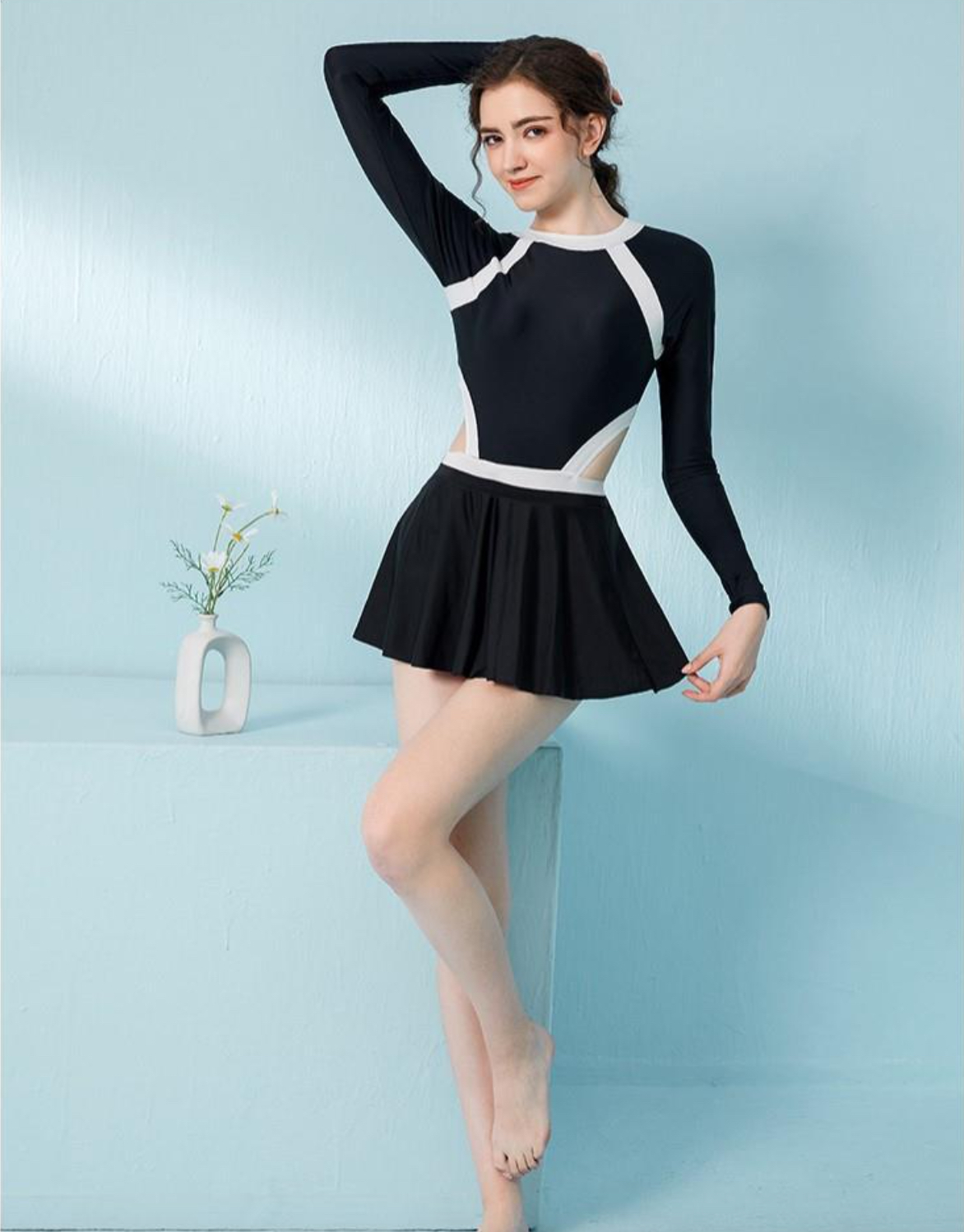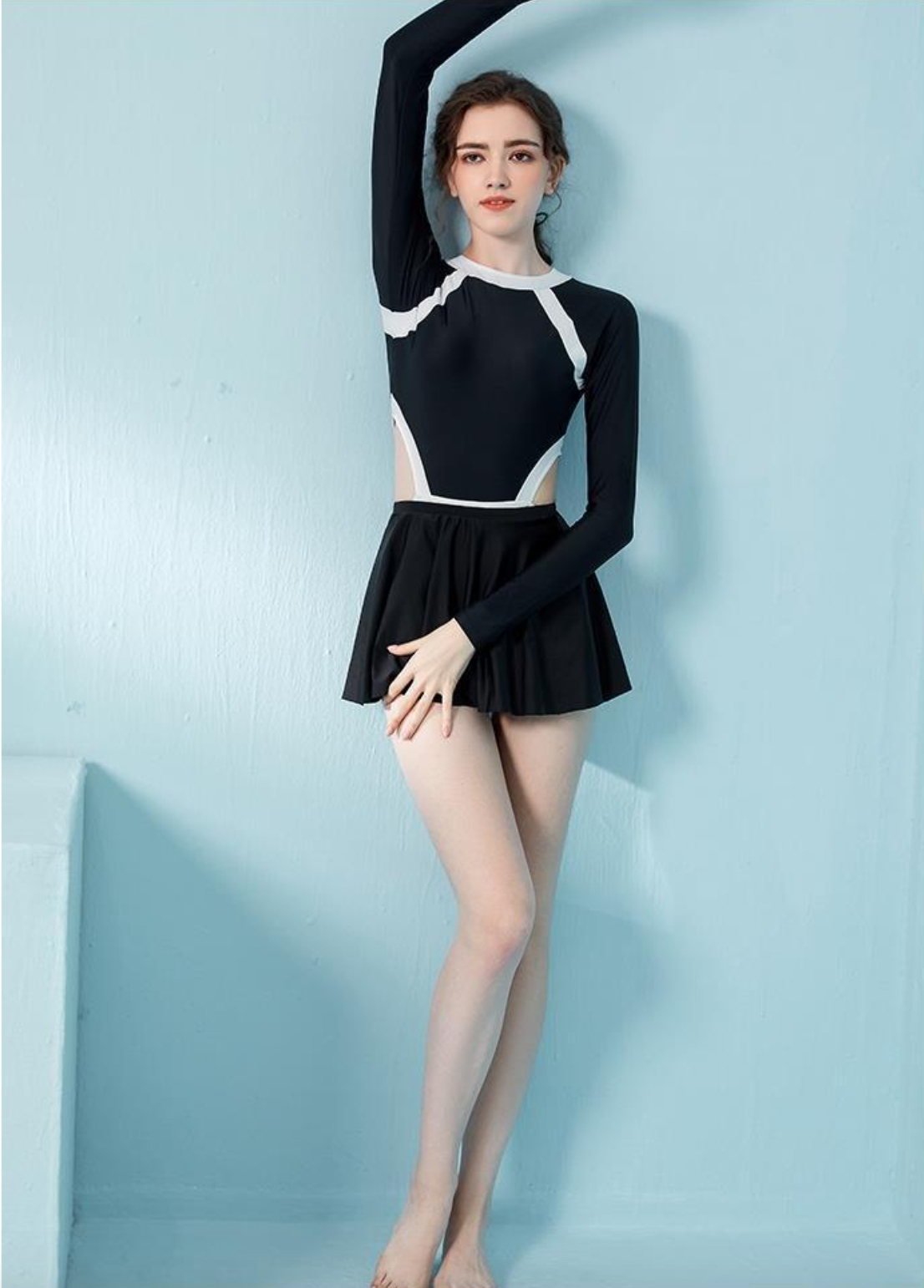 ✨Bộ đồ bơi bikini nữ kín đáo 1 mảnh đi tắm biển giấu bụng váy liền áo dài tay - B.42