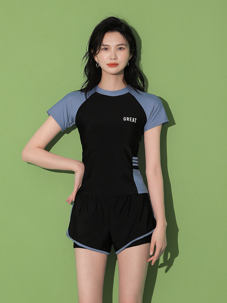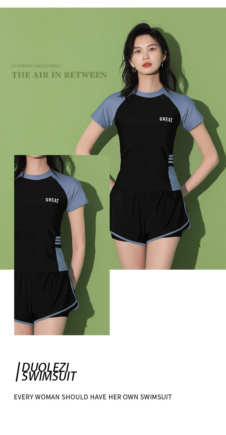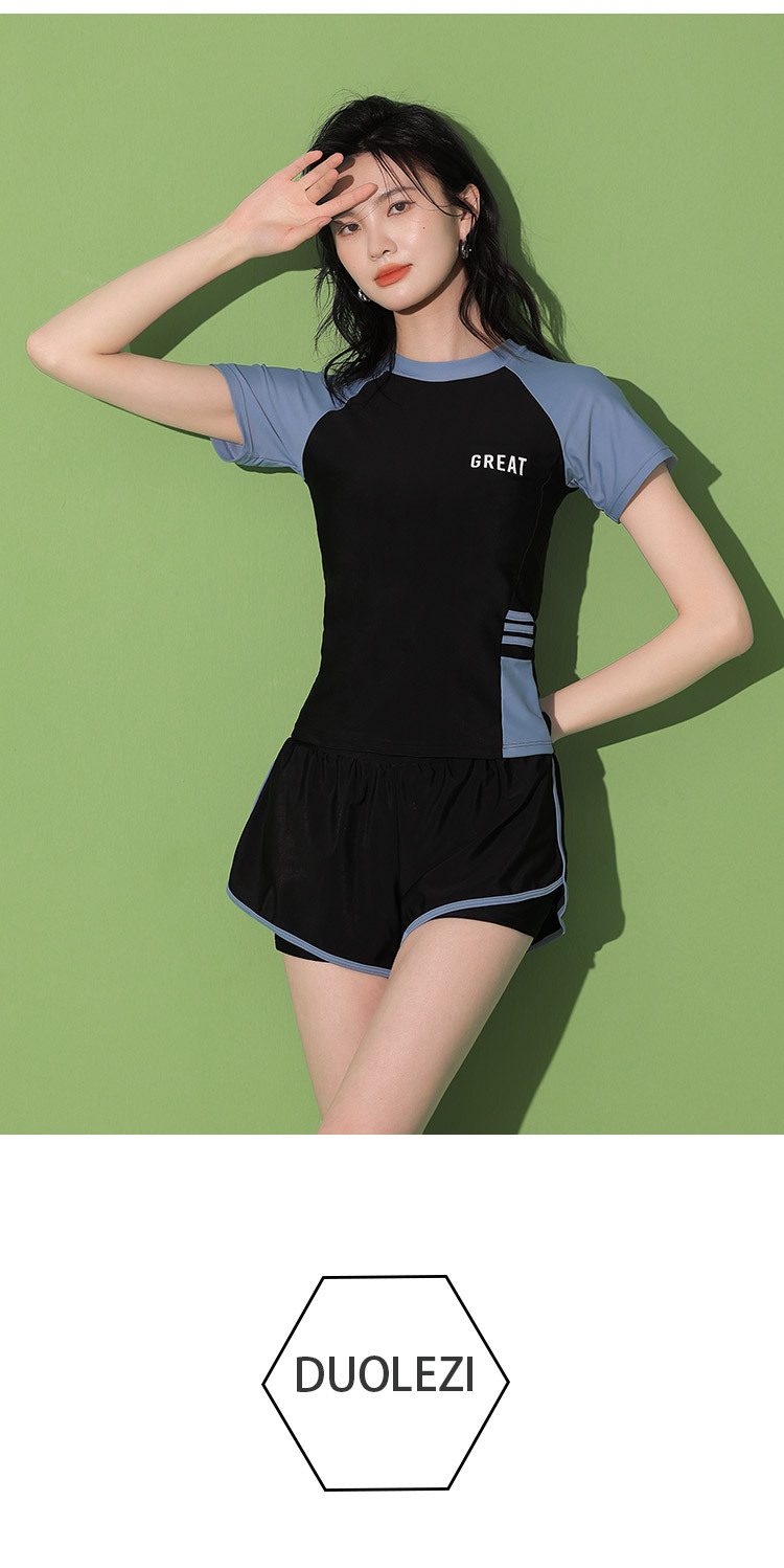 ✨Bộ đồ bơi nữ gồm quần đùi và áo ngắn tay trẻ trung, năng động
