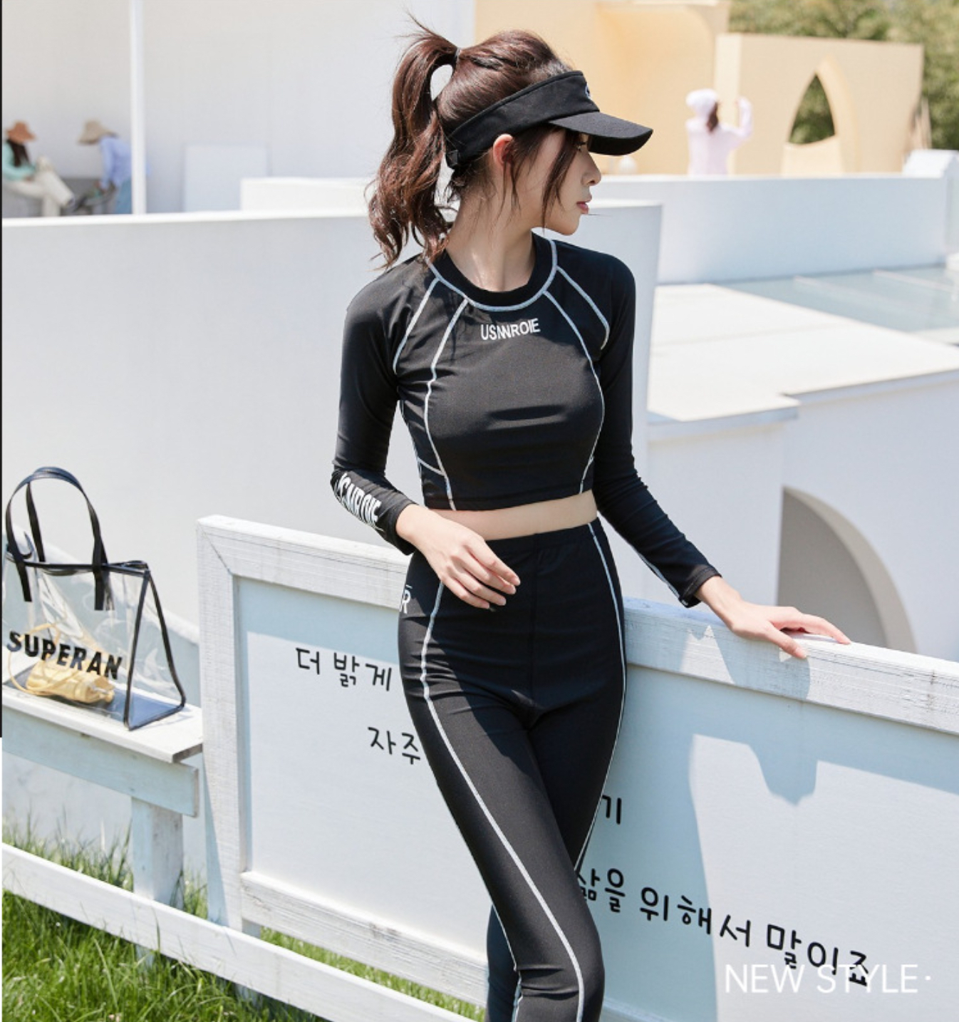 Set Đồ Bơi Nữ Rời Đùi Dài Tay Đi Biển Đi Bơi Chất liệu Polyester 95%, mật độ dệt vừa Áo có sẵn lớp đệm, hông áo có thể rút lên làm croptop cá tính