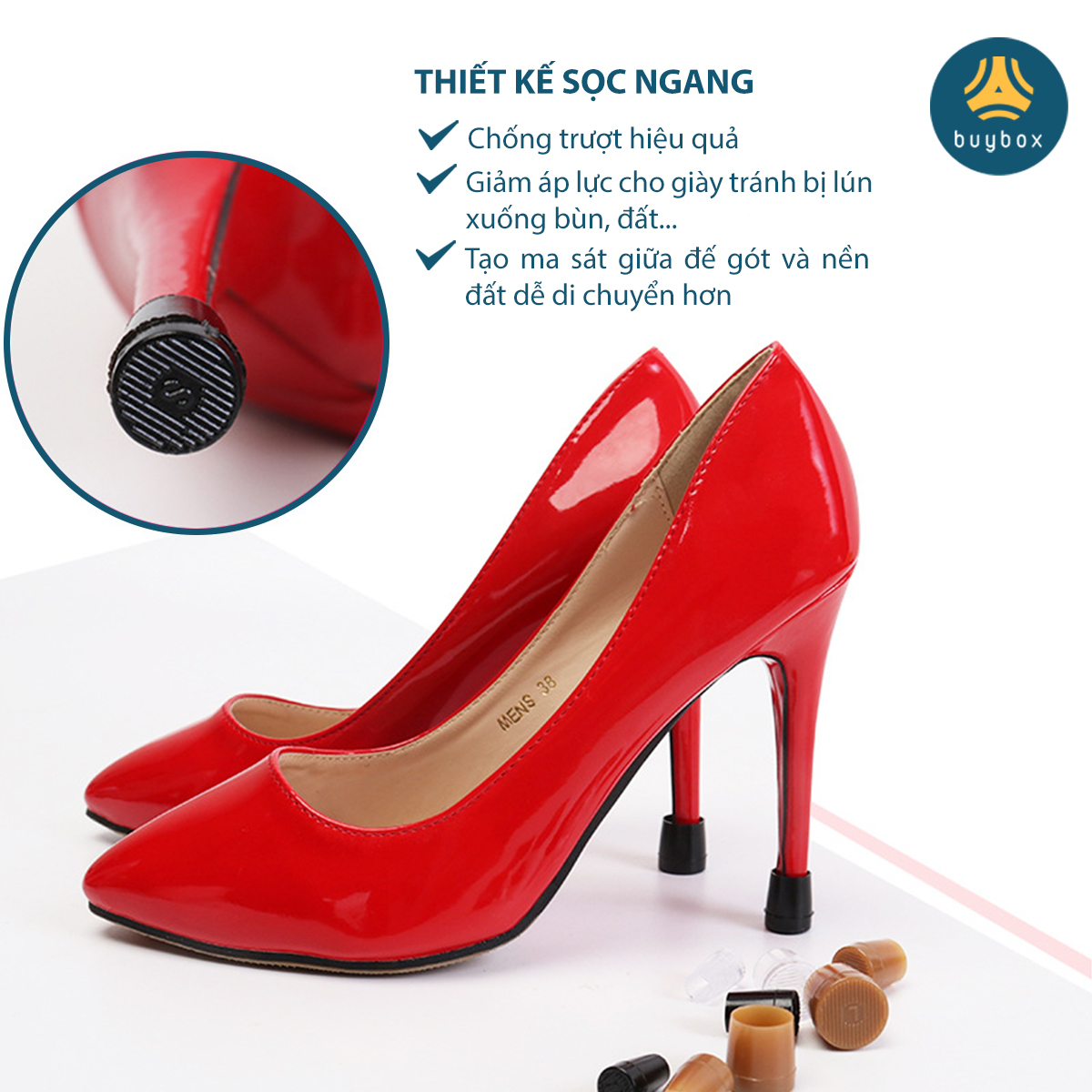 Giày dép không chỉ bảo vệ đôi chân bạn tránh bị tổn thương, giữ cho bàn chân luôn sạch sẽ mà còn tạo ra phong cách thời trang cho bạn. Đặc biệt giày cao gót là một trong những phụ kiện không thể thiếu của hội chị em, nó không những hỗ trợ chị em phụ nữ sở hữu một chiều cao như mong muốn mà gây ấn tượng mạnh với đối phương bởi nét gợi cảm, nữ tính. Tuy nhiên, đôi khi bạn sẽ gặp một vài tình huống xấu hổ như trơn trượt hay gây ra những tiếng ồn không mong muốn mà đôi giày thân yêu của bạn mang lại. Vỏ bọc gót giày cao gót sẽ là giải pháp khắc phục tình trạng này, giúp bạn tự tin và thoải mái khi di chuyển CÔNG DỤNG NỔI BẬT: ️ Vỏ bọc gót giày cao gót chất liệu PVC bền và co dãn tốt, không dễ biến dạng, chịu nhiệt tốt khắc phục tình trạng trơn. ️ Giúp bạn giữ thăng bằng tốt, ổn định tư thế khi di chuyển, tránh gây đau gót chân. ️ Giảm tiếng ồn, tạo âm thanh nhẹ nhàng khi di chuyển, khiến bạn tự tin hơn trong mỗi bước đi. ️ Bảo vệ đôi giày thân yêu của bạn khỏi tình trạng mòn gót. ️ Màu sắc và kích thước đa dạng, phù hợp cho mọi size mũi giày. ️ Kích thước nhỏ, gọn, tiện lợi dễ mang theo. THÔNG TIN SẢN PHẨM: ️ Quy cách: 1 cặp = 2 nút bọc ️ Sản phẩm nhiều kích thước: size XS, S, M, L ️ Màu sắc: đen, nâu, trong ️ Chất liệu: PVC #nutbaovegiay#phukiengiay#phukienbaovegot#nutbaovegotiay#vobaovegot#vobocgotgiamtiengon#dungcugiamtiengongiaycaogot#dungcubaovegiay