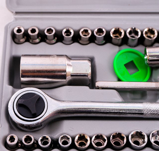 - Hộp đựng các đầu khẩu, cần siết, đầu nối được thiết kế rất chuyên dụng và khoa học; hộp được thiết kế bên trong giống như các khuôn có kích cỡ và kiểu dáng phù hợp với từng dụng cụ, giúp cho việc lấy và cất diễn ra nhanh chóng và thuận tiện.