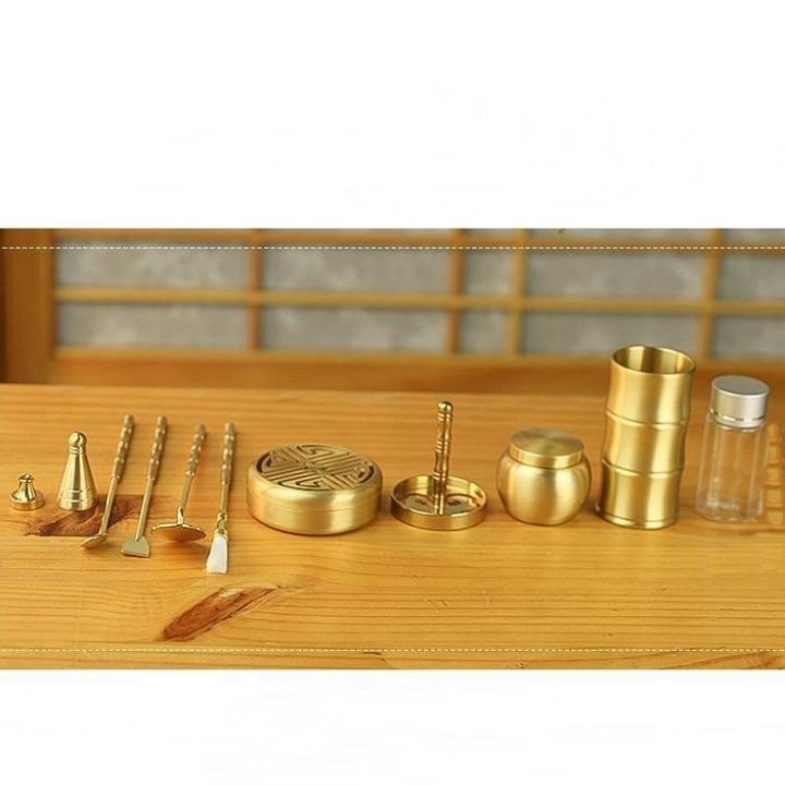 Bộ dụng cụ đốt trầm hương cao cấp - dụng cụ đốt trầm hương bằng đồng -bộ dụng cụ đốt trầm bột Amrita