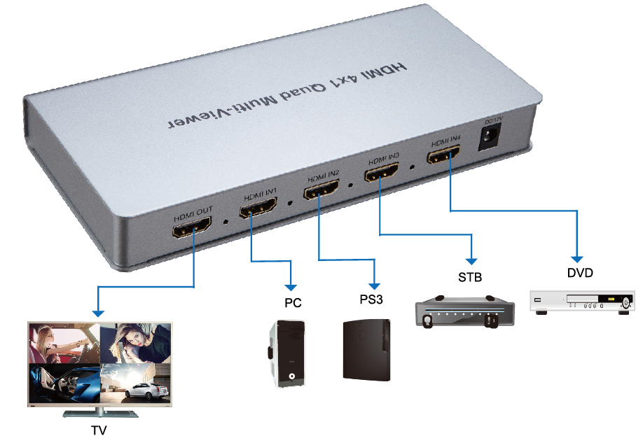 Kết nối hình ảnh và âm thanh cổng HDMI từ 4 máy tính Laptop, PC sang 1 màn hình máy tính, Tivi, máy chiếu dễ dàng, sử dụng đơn giản, cắm và dùng, không cần cài đặt.