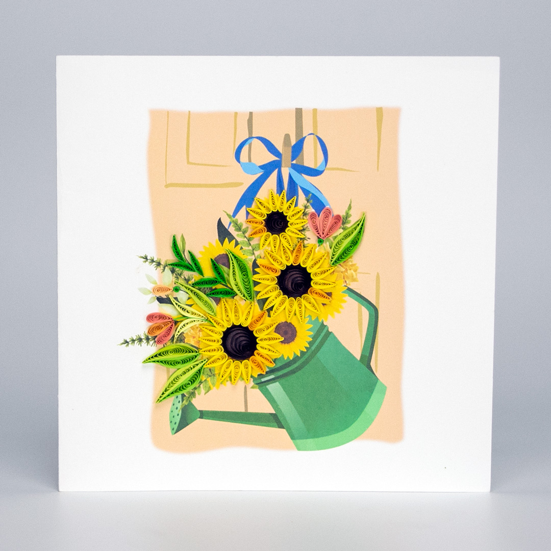 ✨Bó hoa hướng dương cắm trong chậu tưới cây - Thiệp giấy xoắn 15 x 15 cm - Thiệp chúc mừng dành cho người yêu hoa