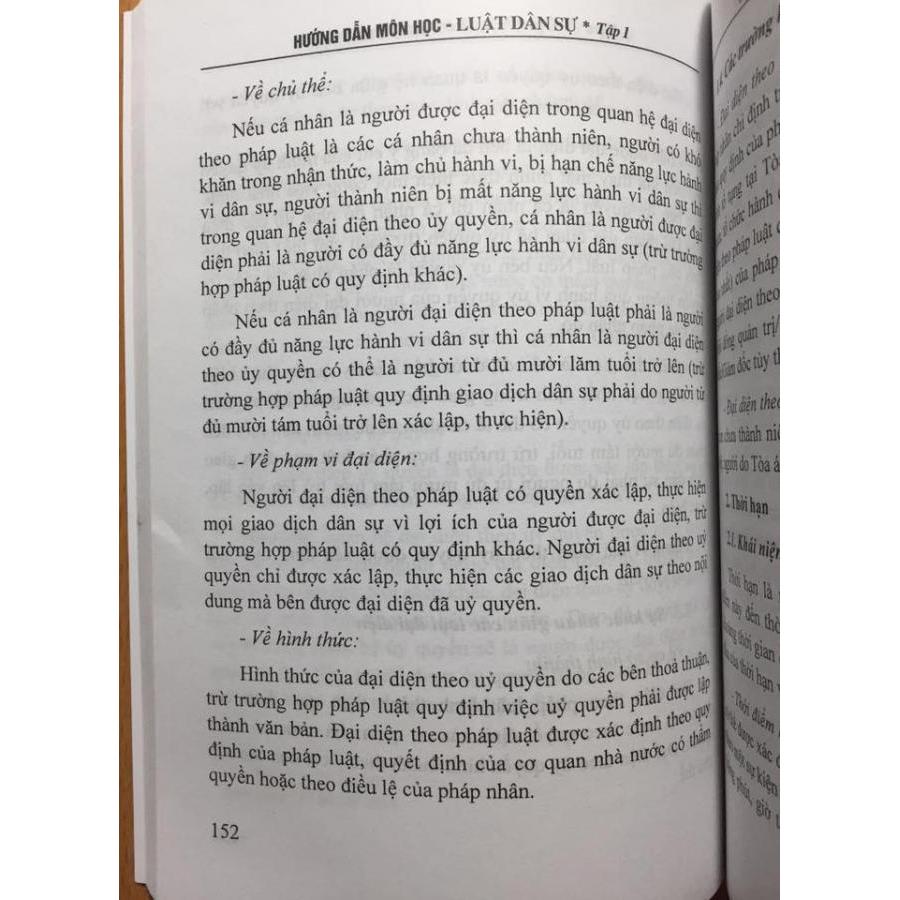 Hướng dẫn môn học luật dân sự tập 1 và 2 Tác giả : PGS.TS Phạm Văn Tuyết (Chủ biên) Nhà xuất bản: Tư Pháp Tập 1: Số trang: 436 Khổ 14,5 x20,5 cm Tập 2: Số trang: 576 trang khổ 14,5 x20,5 cm