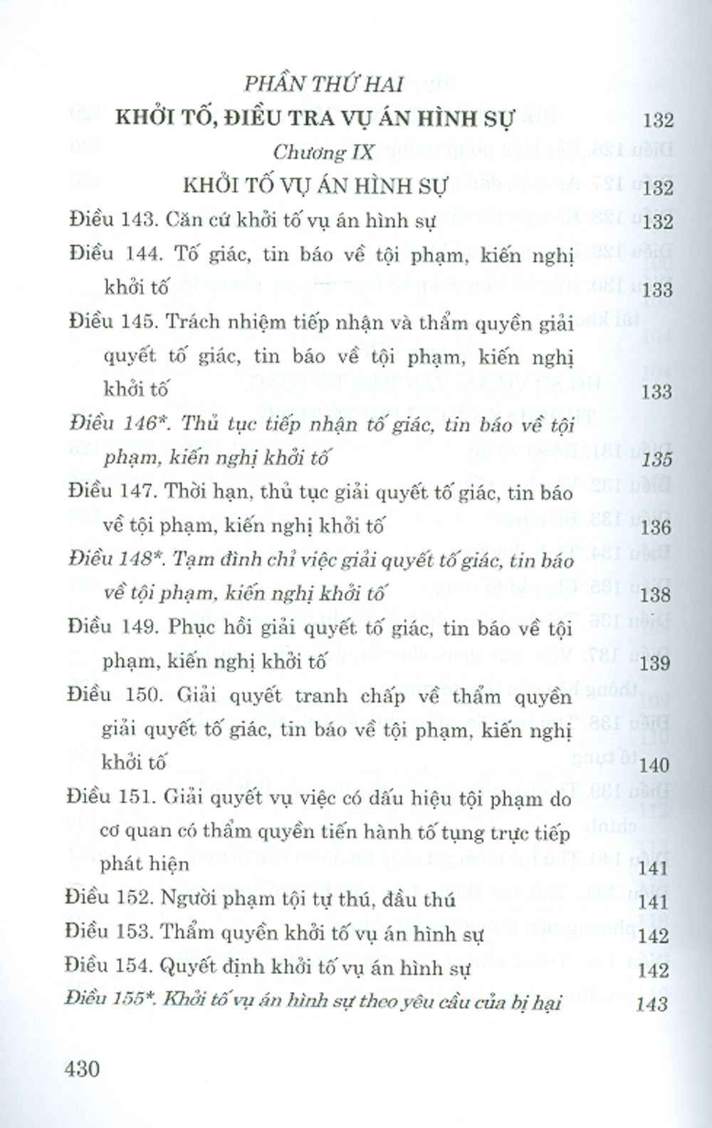 Cuốn sách gồm 9 phần, 510 điều, quy định trình tự, thủ tục tiếp nhận, giải quyết nguồn tin về tội phạm, khởi tố, điều tra, truy tố, xét xử và một số thủ tục