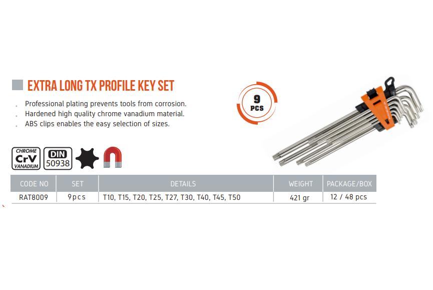 ✨Bộ lục giác dài đầu sao torx 9 chi tiết Retta - RAT8009 Thổ Nhĩ Kỳ