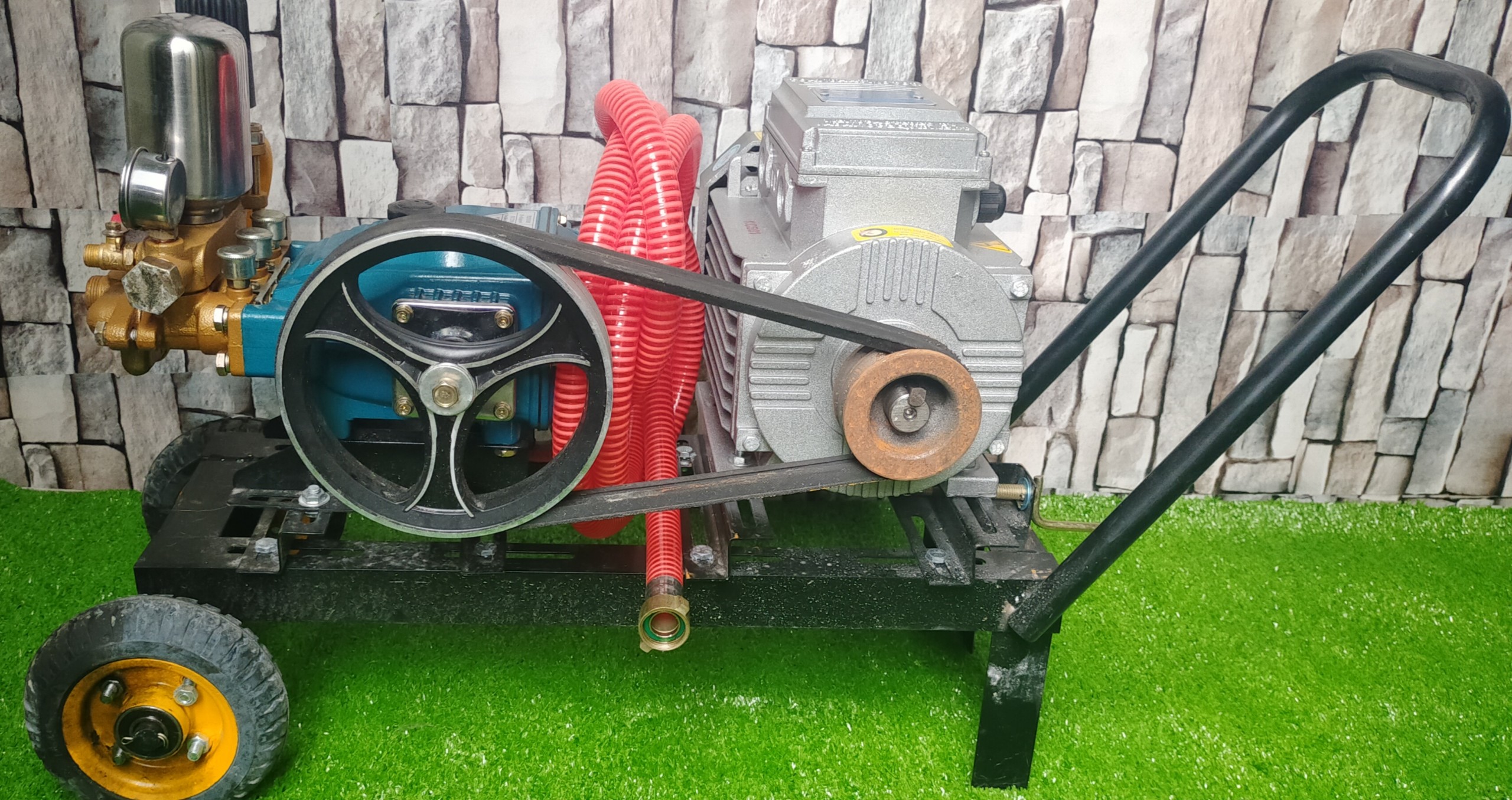 -Máy có kiểu dáng xe đẩy với 2 bánh xe lớn, tay cầm thuận tiện giúp di chuyển dễ dàng trong mọi địa hình.