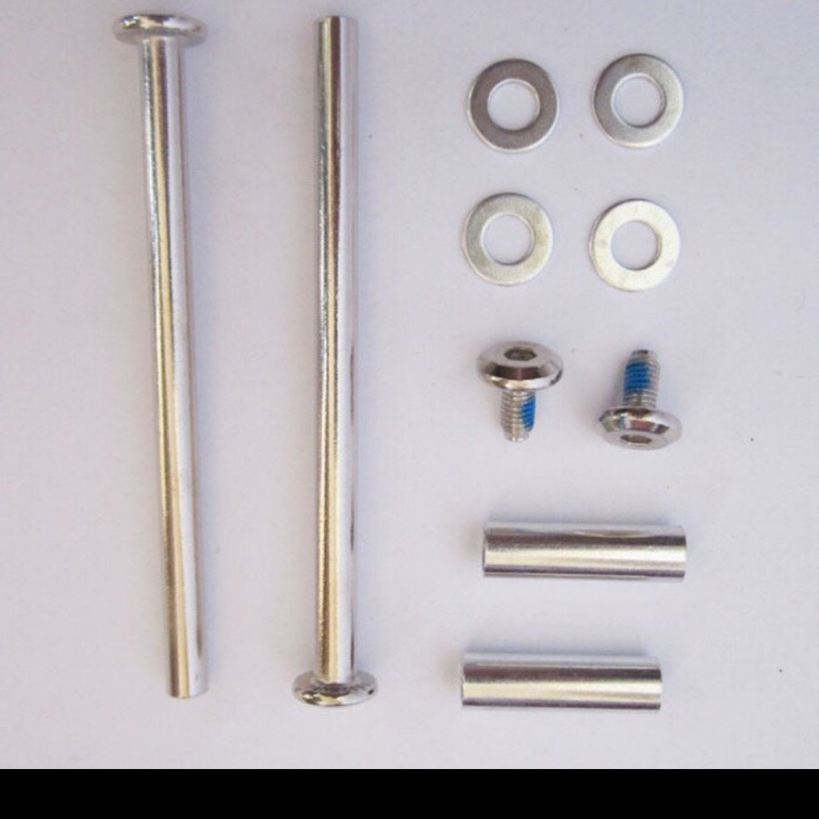 - 2 ốc thanh dài: 1 thanh dài lắp chân phải ( bên chân có phanh) + 1 ốc ngắn lắp chân trái (ko có phanh)