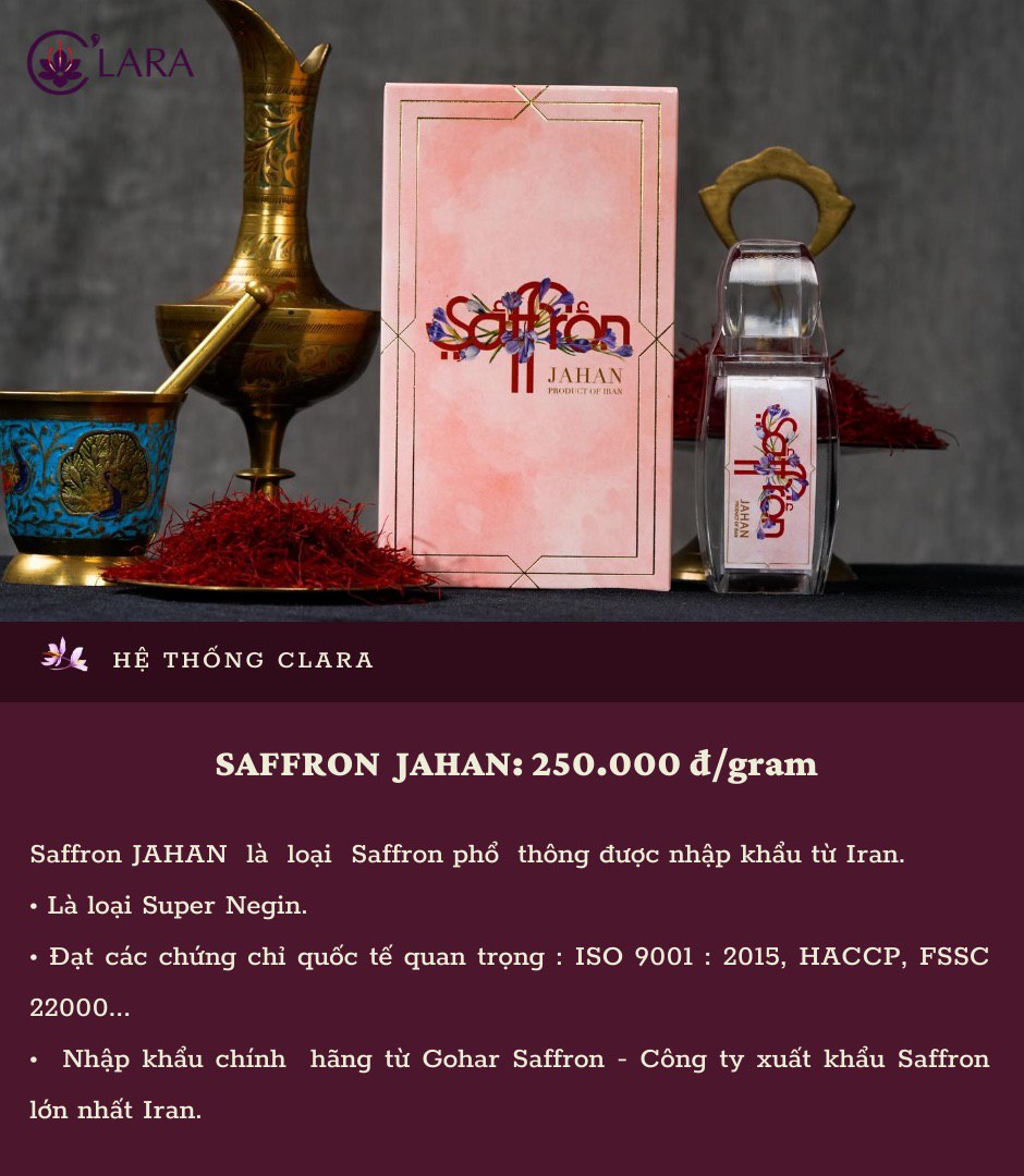 Thương hiệu: Saffron Việt Nam Xuất xứ: Iran Quy cách set quà: Saffron Jahan 01Gram kèm quà tặng Túi quà 20/10, hoa lụa, Giai lệ trà, thiệp Thành phần: Xem chi tiết trên bao bì