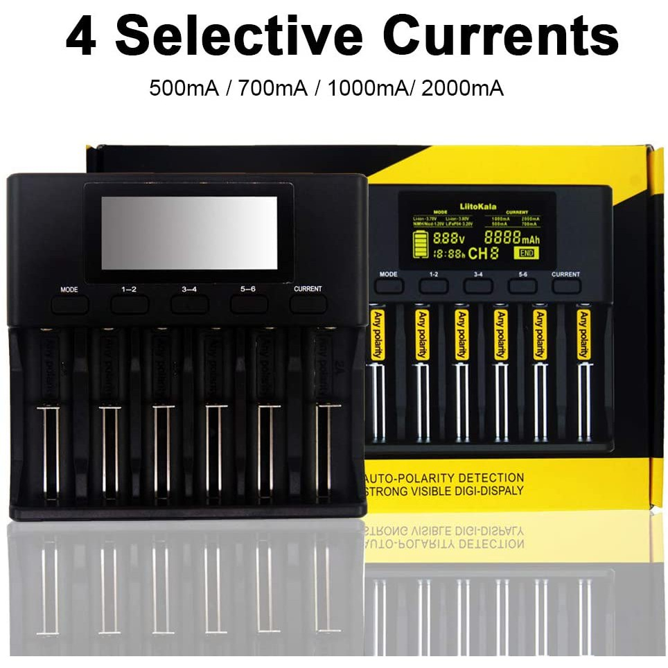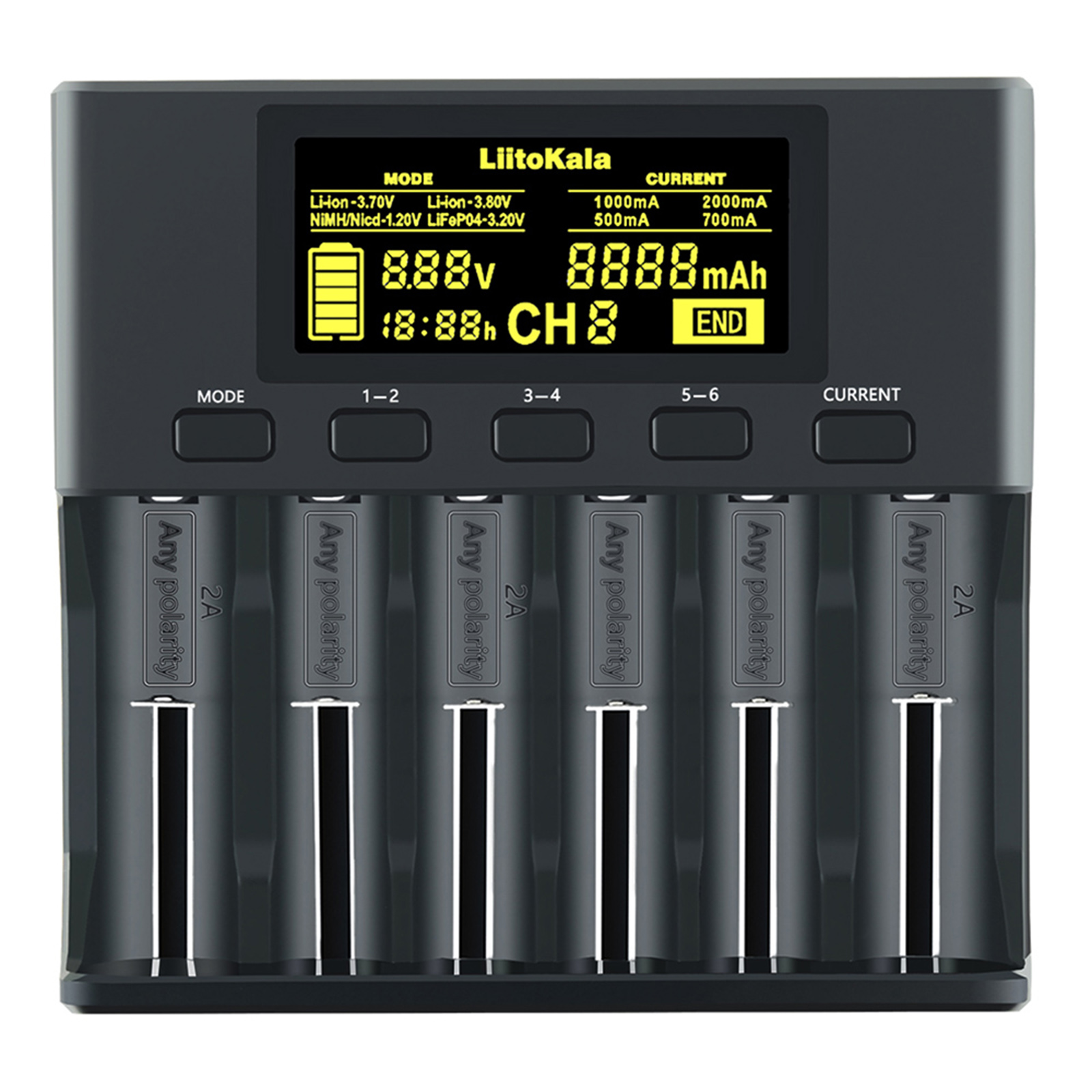 ✨Bộ sạc pin LiitoKala lii-S6 Bộ sạc 6 khe tự động phát hiện cực tính cho 18650 26650 21700 14500.10440 AA AAA