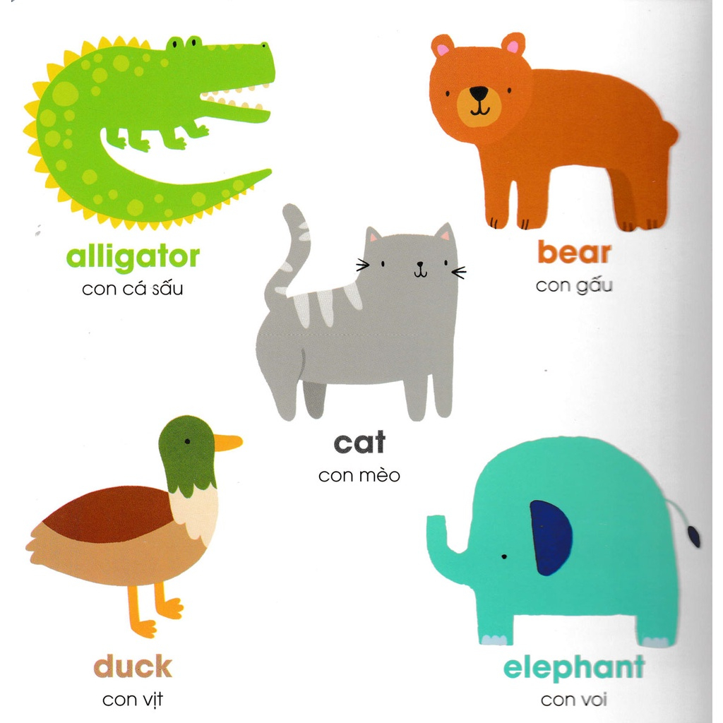 - Giúp bé phát triển từ vựng và nhận biết động vật: Chuyến tàu của các loài động vật Đây là bộ sách màu sắc/động vật vô cùng thú vị, giúp bé vừa học vừa chơi mà không hề nhàm chán. Mỗi cuốn sách gồm có 8 trang hình ảnh màu, trong đó 4 trang từ vựng song ngữ Anh – Việt xen kẽ với 4 trang chứa miếng ghép hình sinh động, đáng yêu. Sau khi hoàn thành xong cuốn sách, bé có thể ghép nối những miếng ghép đó thành một đoàn tàu hoặc chuyến xe tùy vào sự sáng tạo của mình. Trong cuốn sách Bộ sách đồ chơi – Giúp bé phát triển từ vựng và nhận biết màu sắc: Chuyến xe buýt sắc màu, bé sẽ được làm quen với 4 màu sắc cơ bản (đỏ, vàng, xanh dương và xanh lá), và trong mỗi trang màu cơ bản đó, bé sẽ được biết thêm 4 đồ vật/sự vật khác. Còn trong cuốn Bộ sách đồ chơi – Giúp bé phát triển từ vựng và nhận biết động vật: Chuyến tàu của các loài động vật, bé sẽ được làm quen với 5 loài động vật đáng yêu ở mỗi trang, từ những loài sống trong rừng rậm đến những loài sống dưới đại dương xanh. Nhờ những nét vẽ minh họa đáng yêu, tài tình của Lisa & Damien Barlow, các bậc phụ huynh có thể dễ dàng giúp bé yêu thích cuốn sách và say mê học tập. Kết hợp giữa 2 ngôn ngữ Anh – Việt, đây không những là một cuốn sách giải trí thông thường mà còn giúp bé tiếp thu thêm một ngôn ngữ mới thông qua việc học sáng tạo trong cuốn sách này.