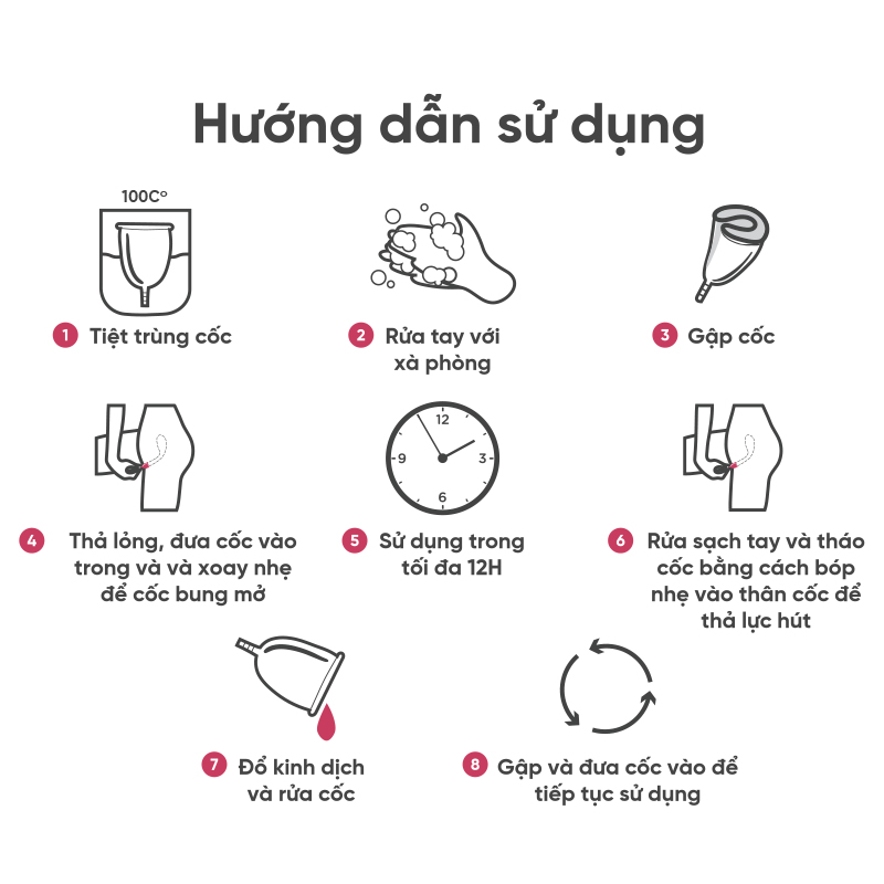 THÔNG TIN SẢN PHẨM - Tên sản phẩm: Cốc nguyệt san Tiêu chuẩn S Cup cỡ S; - Dung tích 30ml, sức chứa tối đa lên đến 12 giờ liên tục; - Đối tượng sử
