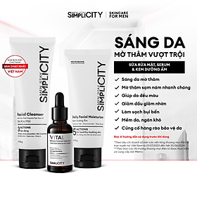 ✨Bộ sản phẩm Men Stay Simplicity sáng da, mờ thâm cho nam: Sữa rửa mặt 100g + Vital Serum sáng da 30ml + Kem dưỡng ẩm 80g