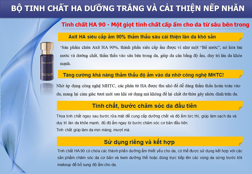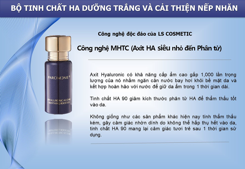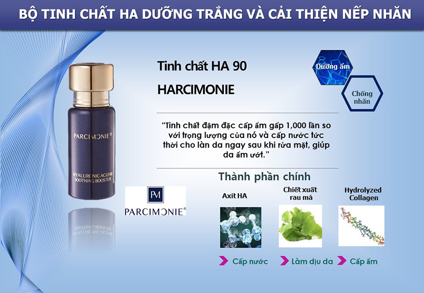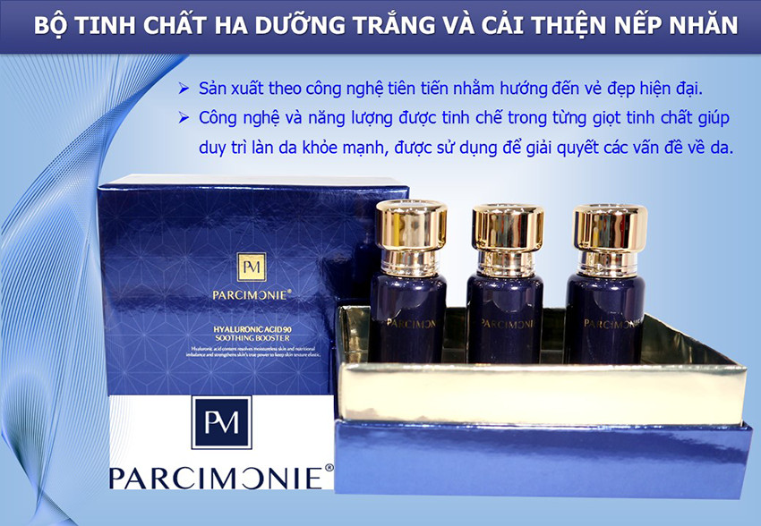 Mô tả Tinh Chất Dưỡng Trắng Và Cải Thiện Nếp Nhăn Parcimonie Hyaluronic Acid 90 Soothing Booster, đây được xem là dòng tinh chất chứa giàu thành thành phần Hyaluronic Acid nhất trên thị trường