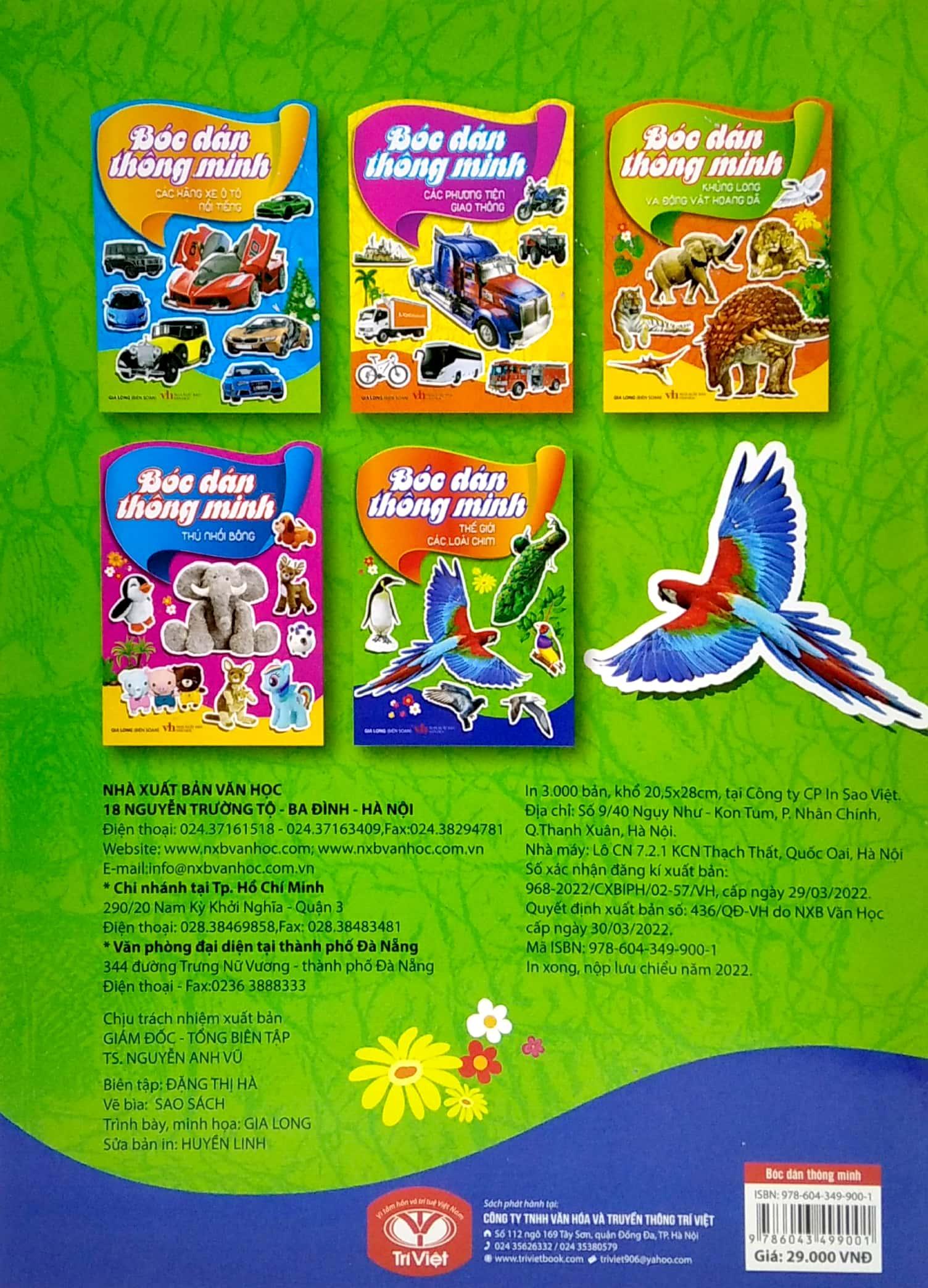 Bộ Bóc dán thông minh dành cho trẻ từ 2-6 tuổi, giúp trẻ kết hợp khéo léo giữa bàn tay và trí não. Với 5 chủ đề: Các hãng xe ô tô nổi tiếng; Thế giới loài chim; Khủng long và động vật hoang dã; Các phương tiện giao thông; Thú nhồi bông, sẽ nâng cao trí tuệ toàn diện cho trẻ như: khả năng quan sát, trí nhớ, trí tưởng tượng và khả năng sáng tạo. Phát triển đồng bộ IQ, EQ và CQ.