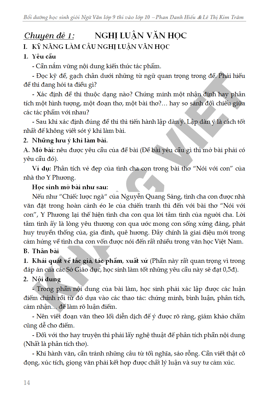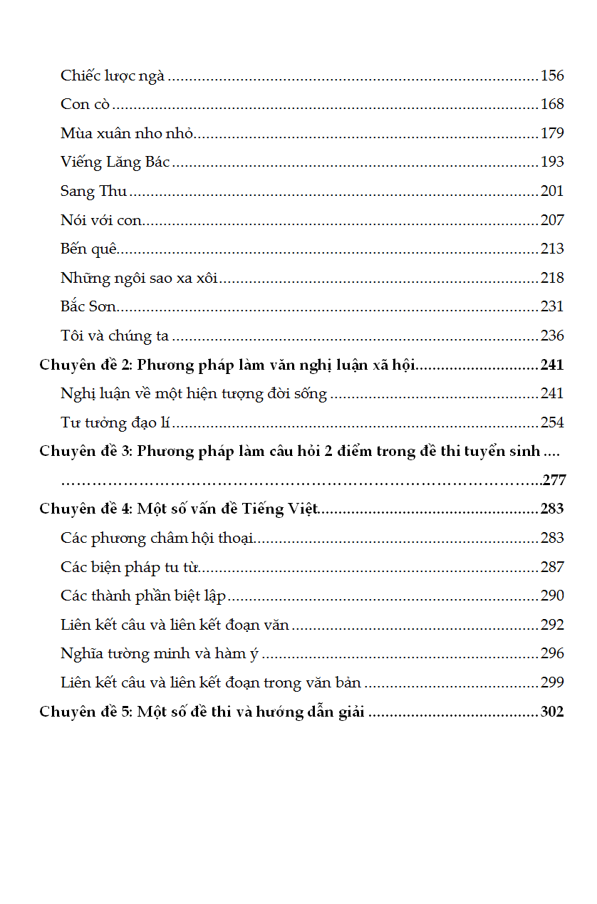 Bao gồm hai dạng đề cơ bản là Nghị luận về một hiện tượng đời sống và Nghị luận về một tư tưởng đạo lý. Sách viết có phần hướng dẫn cụ thể cách làm, cách triển khai luận điểm. Có bài mẫu cho học sinh tham khảo.