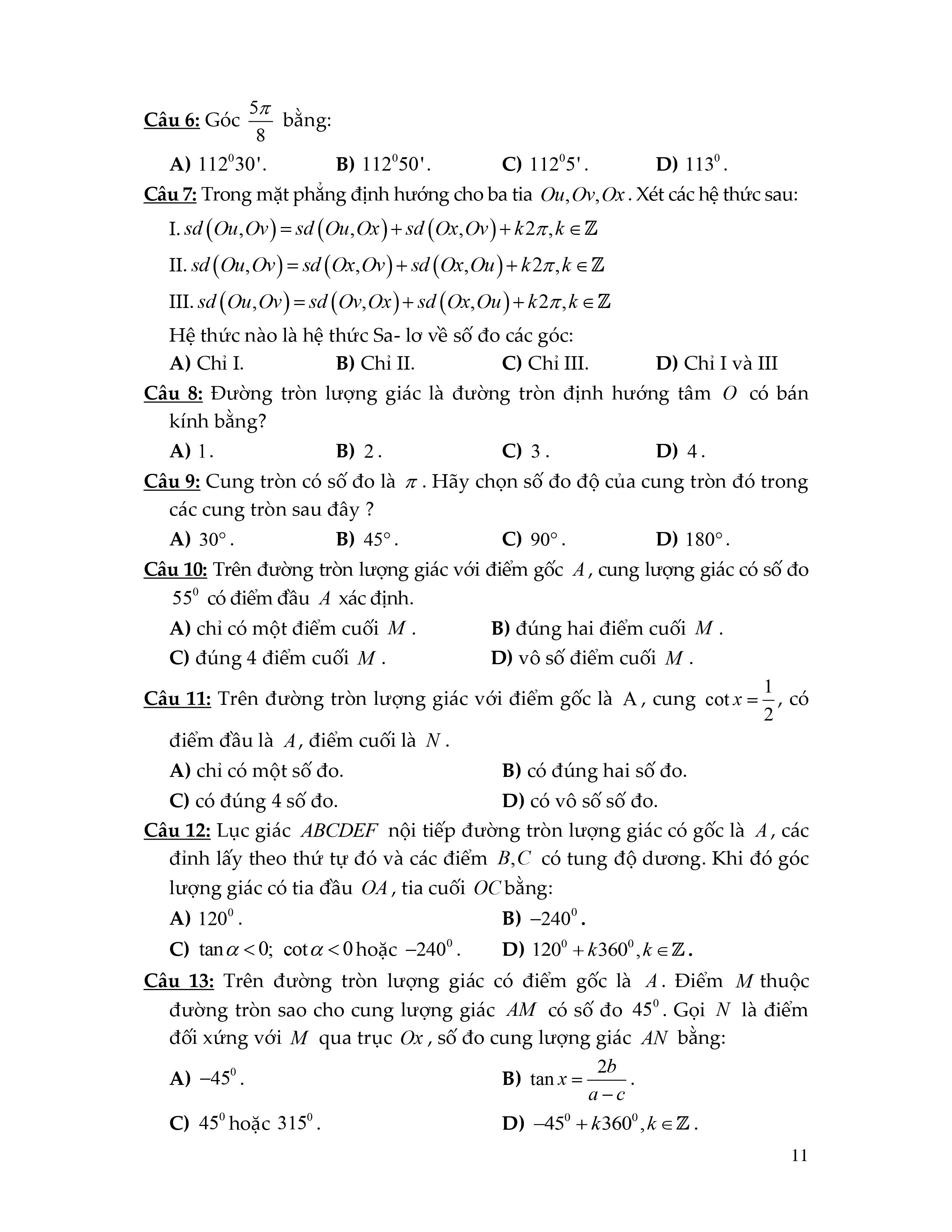 Đại số 11 | Bài 1 : Góc Lượng Giác ( chương trình mới )