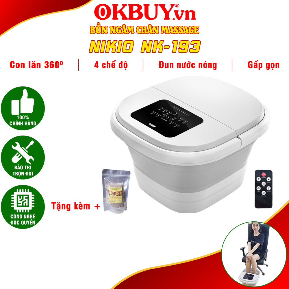Bồn ngâm chân massage gấp gọn Nikio NK-193 sản phẩm với công nghệ mát mới bi xoay 360 độ, giúp xoa bóp day ấn các huyệt đạo dưới lòng bàn chân hiệu quả hơn. Hỗ trợ giảm stress, tươi mới bàn chân và cải thiện giấc ngủ cho người sử dụng