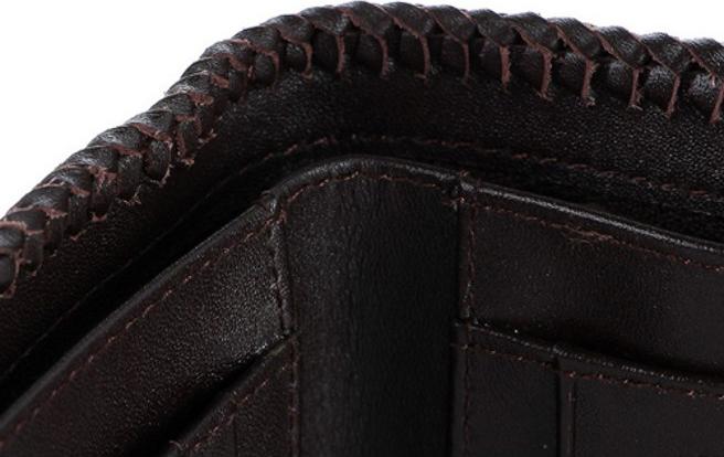 Ví/Bóp nam Huy Hoàng da bò đan viền màu nâu 2136