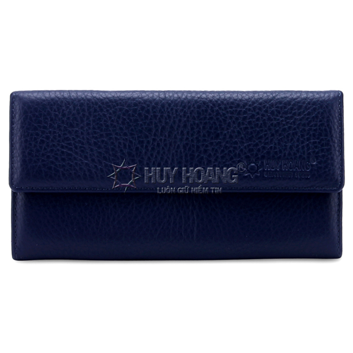 Ví/Bóp nữ da bò Huy Hoàng cao cấp 3 gấp màu xanh đậm 3139