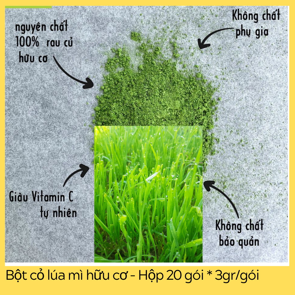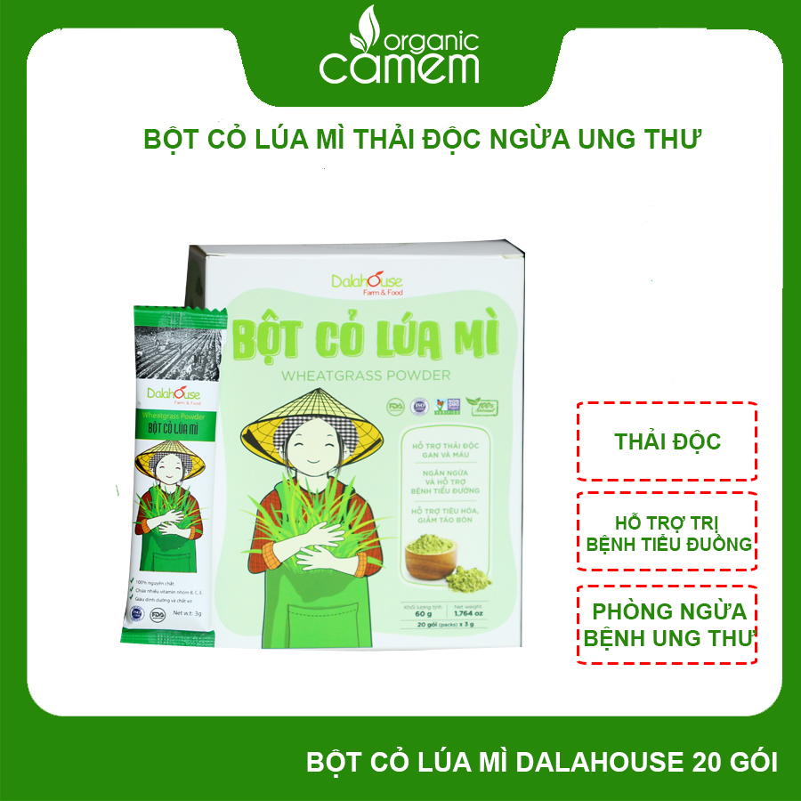 ✨Bột cỏ lúa mì hữu cơ sấy lạnh Dalahouse - Hộp 20 gói 3gr tiện lợi - Hỗ trợ thải độc Gan và Máu, Ngăn ngừa và hỗ trợ tiểu đường, Hỗ trợ tiêu hóa, giảm táo bón
