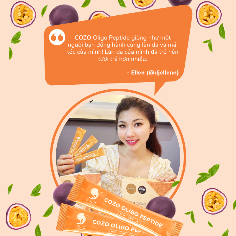 Ứng dụng công nghệ khoa học phân tử vào sản xuất, bột Cozo Oligo Peptide chứa những phân tử cực nhỏ từ 300 - 500 Da, giúp sản phẩm thấm sâu vào da, giúp kích thích sản sinh collagen và elastin, giúp giảm viêm , nâng cao khả năng tự miễn dịch của cơ thể và ngăn chặn sự hình thành cục máu đông