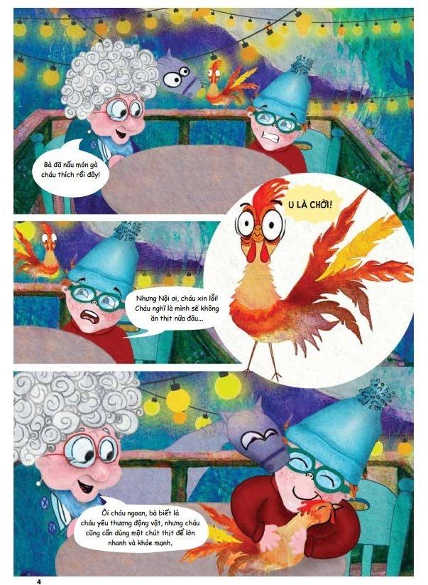 Ôi cháu ngoan, bà biết là cháu yêu thương động vật, nhưng cháu cũng cần dùng một chút thịt để lớn nhanh và khoẻ mạnh.