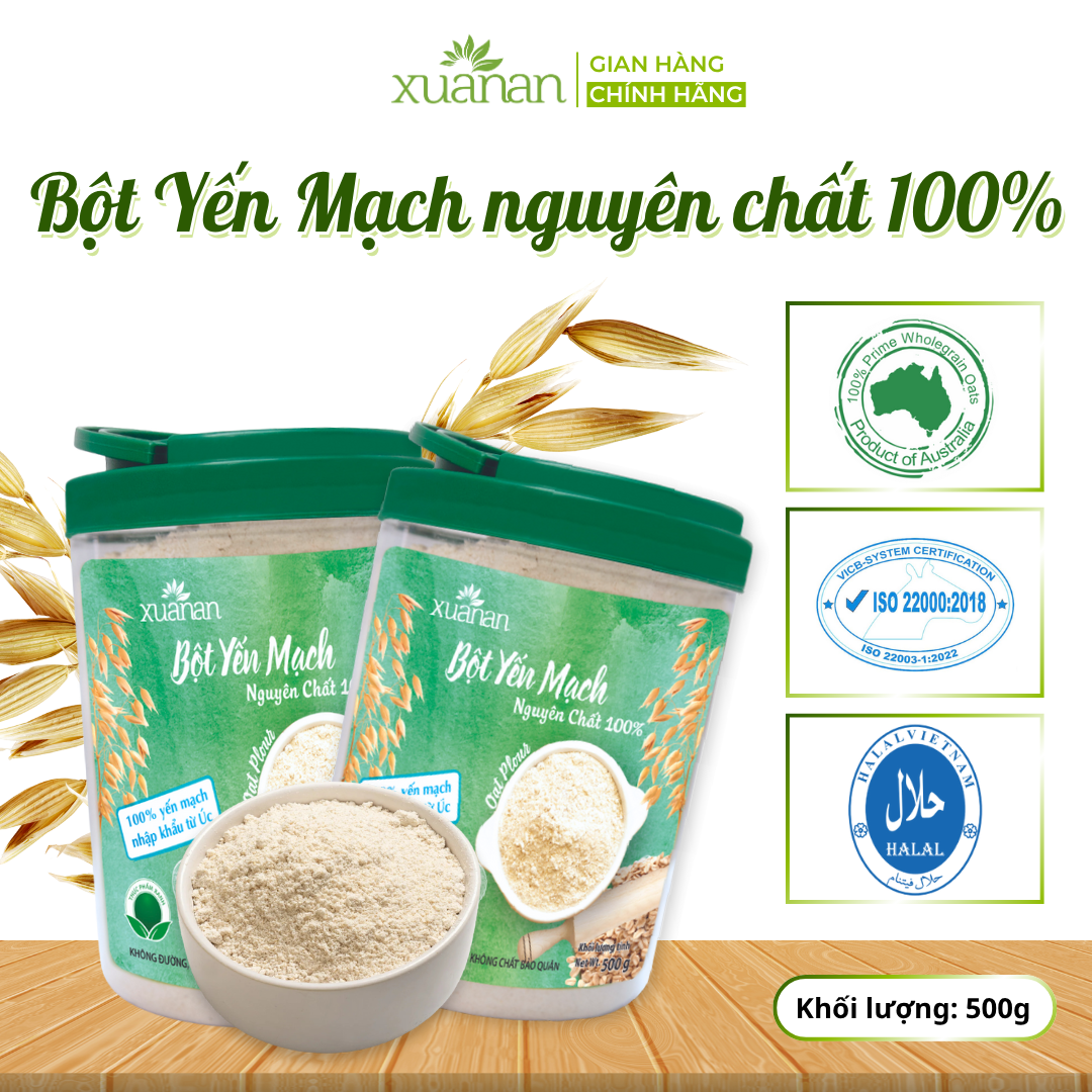 Bột Yến Mạch nguyên cám nguyên chất 100% giàu dinh dưỡng, chất xơ, vitamin, đạm và dưỡng chất tự nhiên. Tiện lợi dùng làm bánh, quấy bột cho trẻ nhỏ hoặc dùng làm nguyên liệu chế biến bữa ăn trong gia đình. 100% Yến mạch nguyên chất Xuân An (Instant Oats) được nhập khẩu từ ÚC.