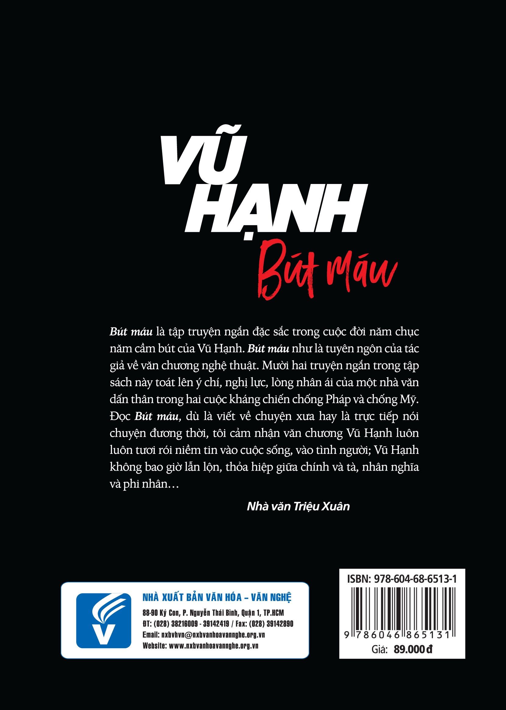 Tác giả: Vũ Hạnh Khổ sách: 14x20 cm Số trang: 284 trang Năm xuất bản: 2020 NXB Văn Hóa Văn Nghệ Trích đoạn: Bút máu Giữa mùa xuân ấy, Sinh lâm bệnh nặng, nằm