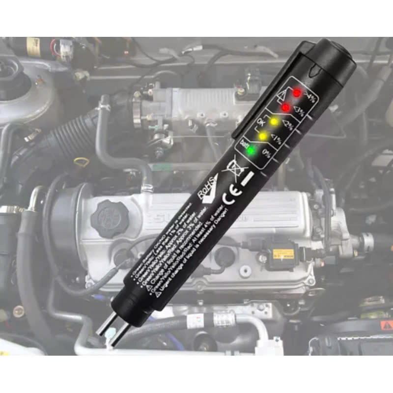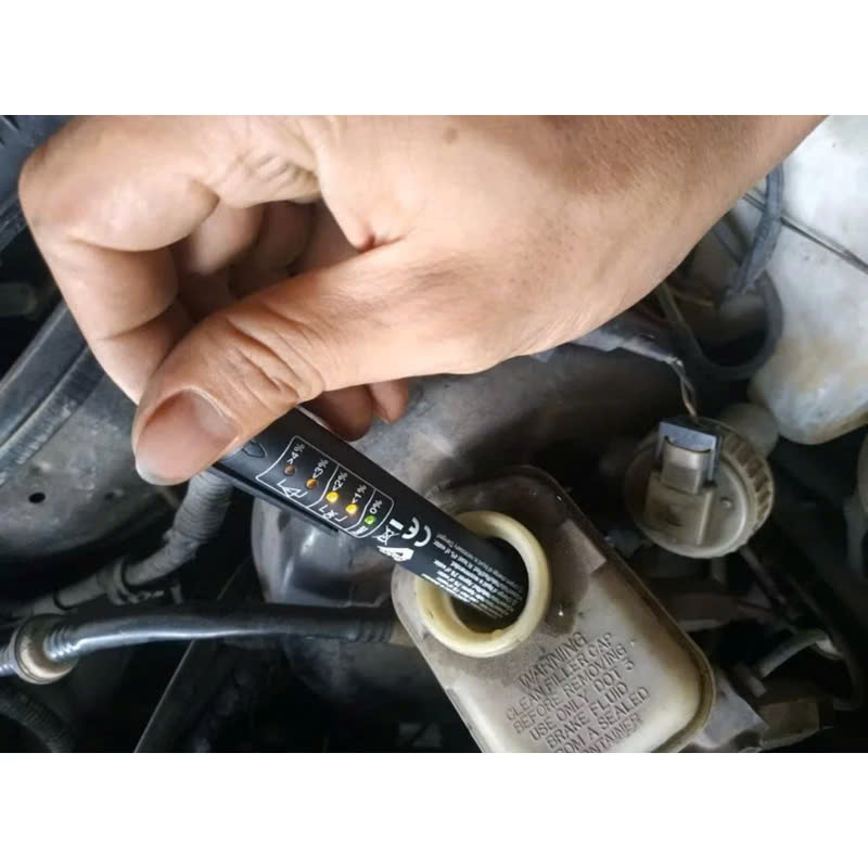 Vì vậy nguyên nhân dẫn đến hiện tượng mất phanh , phanh không ăn , hiện tượng hỏng tổng bơm hoặc giảm tuổi thọ tổng bơm đều do chất lượng dầu phanh kém như : dầu phanh dùng lâu có hàm lượng nước cao gây mất lực nén, trong dầu phanh có nhiều kim loại do quá trình sử dụng bị mài mòn vv..vv. Hiểu được điều đó chúng tôi xin giới thiệu đến các bạn sản phẩm thiết bị thử dầu phanh cho ô tô xe máy , kiểm tra để biết được dầu phanh còn sử dụng tốt hay cần thay thế để đảm bảo an toàn cũng như tiết kiệm chi phí tránh hư hỏng tổng bơm dầu trên xe của bạn Ngoài ra bạn cũng có thể dùng bút để thử xem loại dầu phanh bạn mua có tốt hay không trước khi cho vào xe để sử dụng  Các tính năng: 1. Kiểm tra chất lượng dầu phanh. 2. 5 LED đèn hiển thị mức độ phần trăm của độ ẩm trong dầu phanh.( Nếu độ ẩm cao - dầu phanh là chất dễ hút nước) sẽ dẫn đến điểm sôi thấp hơn, làm ảnh hưởng đến hiệu suất phanh  Hướng dẫn sử dụng: 3. Ấn nút Nguồn (power on), đèn LED màu xanh sẽ sáng lên. 4. Nhúng đầu bút thử vào bình chứa dầu phanh, đợi 10s, sau đó kết quả sẽ được hiển thị trên thân thiết bị bằng Đèn Led. - Nếu báo đèn Led màu xanh lá cây, hàm lượng nước , kim loại trong dầu phanh < 1.5%, nghĩa là dầu phanh còn tốt. - Nếu báo đèn Led màu vàng, hàm lượng nước , kim loại trong dầu phanh = 1.5% đến 3%, nghĩa là dầu phanh vẫn có thể tiếp tục sử dụng, tuy nhiên cần kiểm tra lại sau sáu tháng. - Nếu báo đèn Led màu đỏ, hàm lượng nước , kim loại trong dầu phanh > 3%, nghĩa là dầu phanh đã kém chất lượng, cần phải được thay thế gấp để đảm bảo an toàn khi đi xe và hệ thống phanh - Thiết bị thử dầu phanh , vệ sĩ bảo vệ bạn trên mọi cung đường * Thông số kỹ thuật: - Loại dầu phanh có thể áp dụng: DOT 3, DOT4, DOT5. - Chạy pin AAA  - Nếu đèn Led màu đỏ nhấp nháy, bạn cần thay pin ngay.