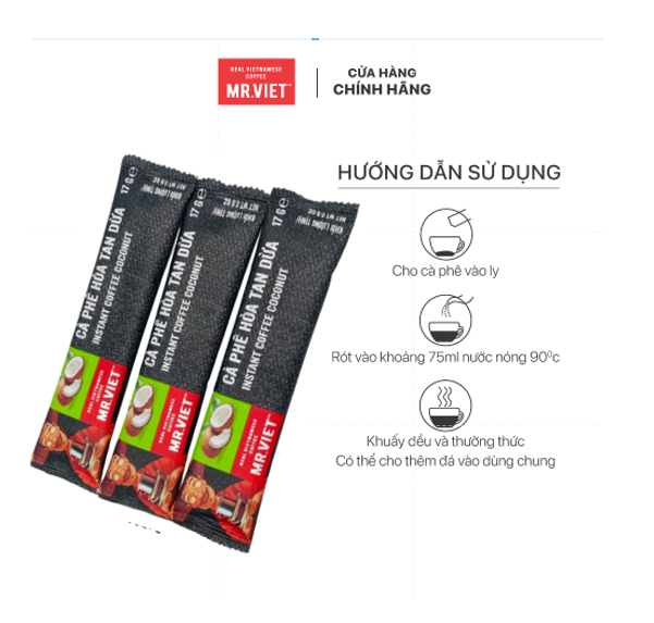 Cà phê hòa tan, cà phê hoà tan Dừa vị đậm đà - MR.VIET Coffee (15gói/hộp x 17g)