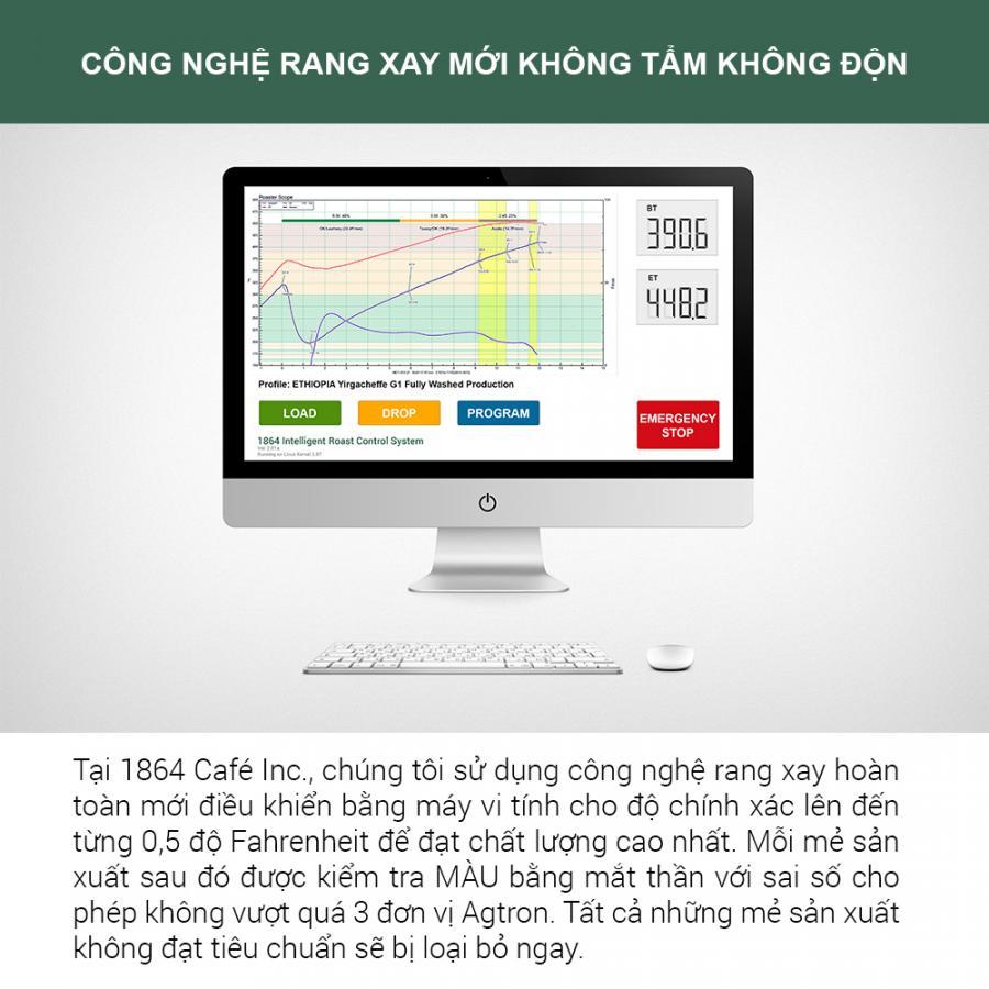Cà phê thương hiệu 1864 CAFÉ là dòng cà phê tinh khiết, hoàn toàn không tẩm hóa chất bảo quản, hóa chất tạo bọt, tạo vị, tạo hương cà phê, vani, chồn, sô cô