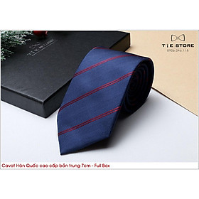 ✨Cà Vạt Hàn Quốc bản trung 7cm Cao cấp kèm hộp - Xanh kẻ đỏ
