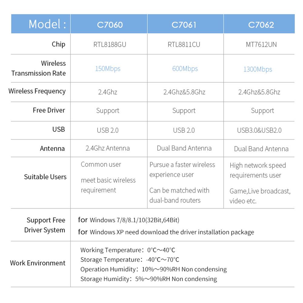 Features: Reliable Performance. Improve the internet speed of laptops, and enable to link to 5G. For desktop PC, no messy network cables, to enable WiFi access on desktop PC, and for office use. 1300M Dual