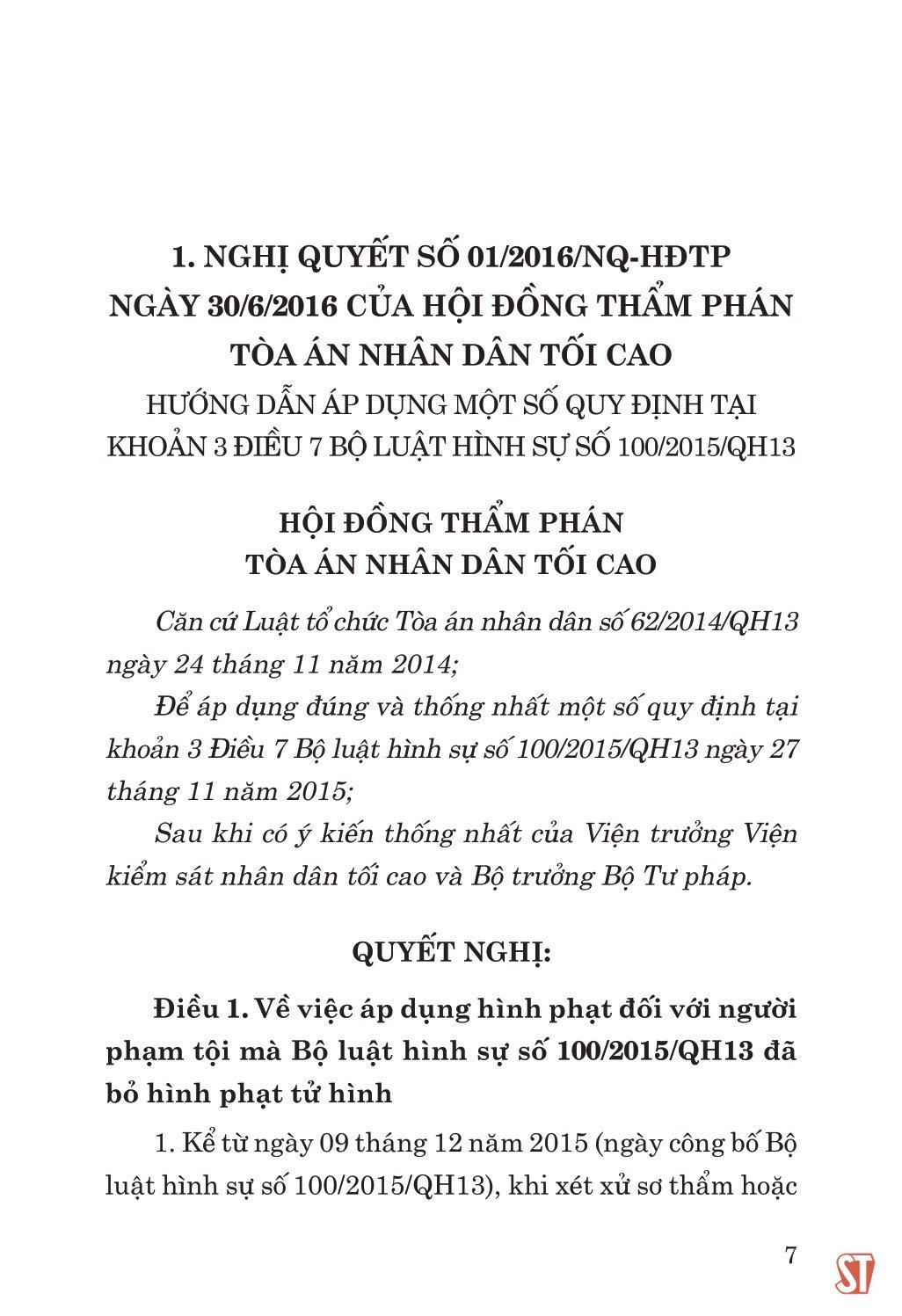 Các Nghị Quyết Của Hội Đồng Thẩm Phán Tòa Án Nhân Dân Tối Cao Hướng Dẫn Thi Hành Bộ Luật Hình Sự Hiện Hành