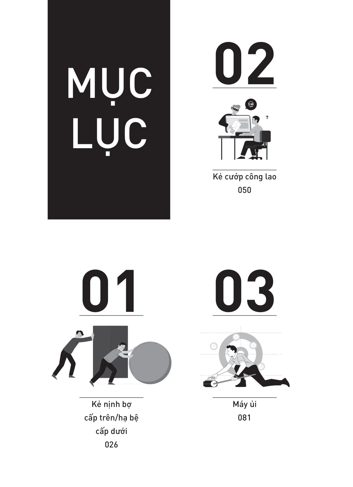 Để giải mã lý do và vượt qua rào cản tâm lý, CẨM NANG CHUYÊN TRỊ ĐỒNG NGHIỆP CÀ CHỚN sẽ giúp bạn đi sâu vào “điều tra” các kiểu đồng nghiệp tồi và tìm ra phương pháp ứng phó hiệu quả. Đôi khi chiến lược không đòi hỏi cao siêu hay buộc bạn phải đối đầu trực tiếp. Dù là người mới đi làm đang gặp khó khăn trong công việc, là quản lý hay thành viên của các hội nhóm, cuốn sách này sẽ là một kim chỉ nam giúp dân văn phòng sinh tồn chốn công sở.