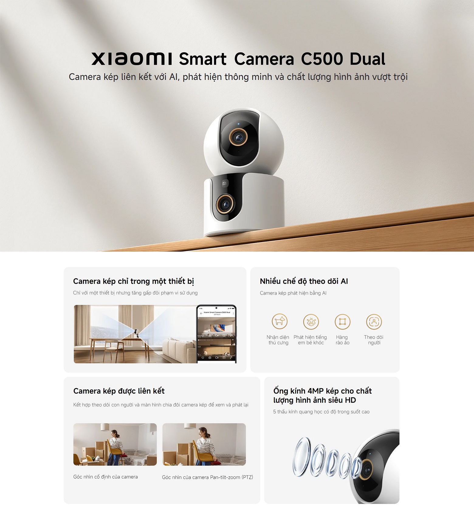 ✨Camera Kép Xiaomi Smart Camera C500 Dual EU - Nhận Diện Thú Cưng - Phát Hiện Tiếng Khóc Em Bé - Hàng Chính Hãng