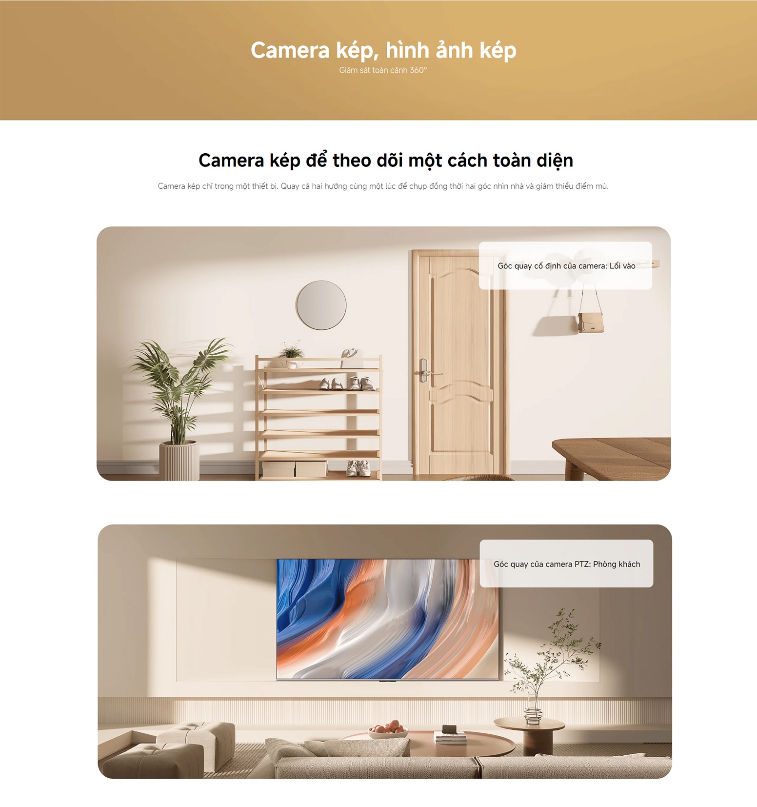 Một ống kính góc rộng cố định + một camera xoay 360° theo dõi thông minh