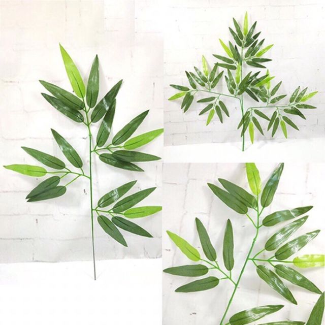 ✨Cành lá tre giả - 1 cành 3 nhánh - dài 60cm - lá nhựa xịn đẹp - Cây giả, hoa lụa Decor trang trí nhà cửa
