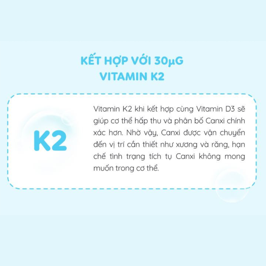 Ưu Điểm 3: Kết hợp thêm Vitamin D3, Vitamin K2, tăng cường khả năng hấp thụ canxi