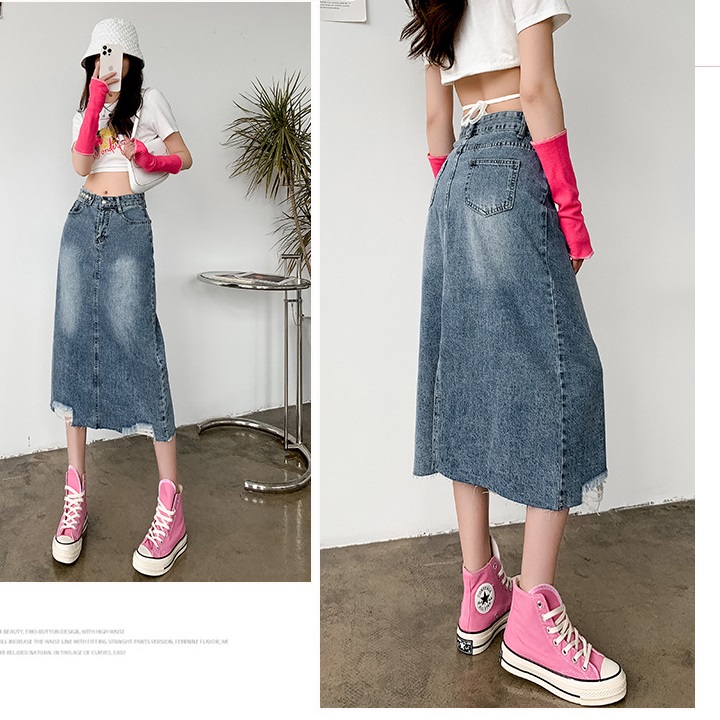 [CAO CẤP] Chân váy jean qua gối rách lai C065 dáng suông wax xanh xám không co dãn SẢN PHẨM CHỈ CÓ VÁY (KHÔNG KÈM ÁO, KHÔNG KÈM BẤT KỲ PHỤ KIỆN NÀO KHÁC) HÀNG