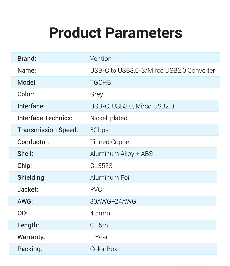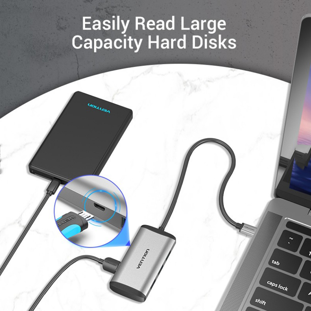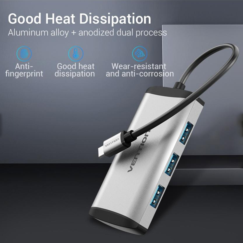 ✨Cáp chuyển USB Type C to 4*USB 3.0 + PD Micro USB Vention TGCHB (5 in 1) - Hàng chính hãng