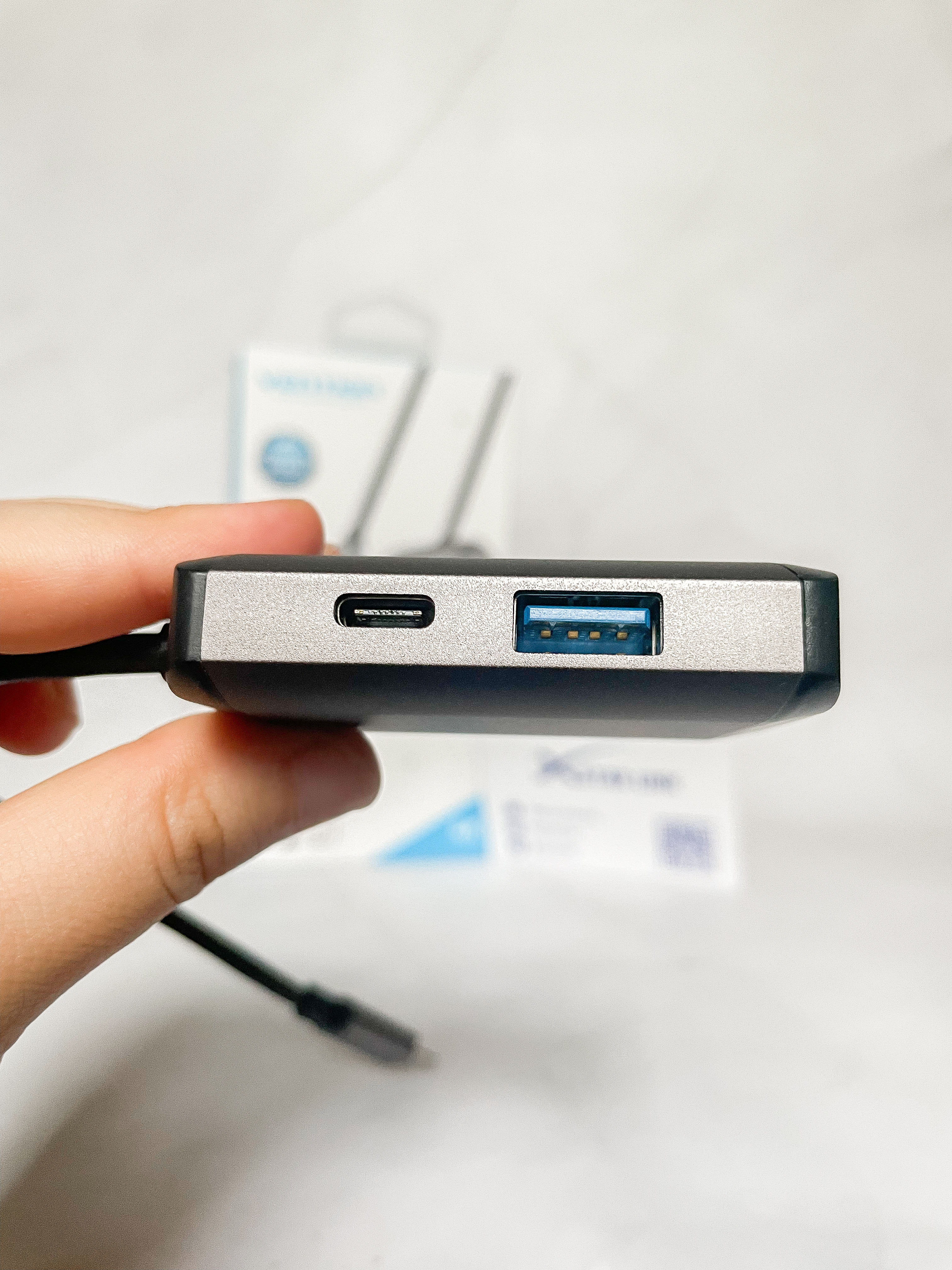 - Cổng USB 3.0 cung cấp tốc độ truyền dữ liệu tốc độ cao lên tới 5 Gbps, dễ dàng chuyển phim HD trong thời gian ngắn. Ngoài ra, còn hỗ trợ sạc và truyền qua 87W PD cho máy tính xách tay hoặc điện thoại thông minh USB-C (không hỗ trợ điện thoại thông minh Apple) và các loại khác thiết bị kết nối với các thiết bị trung tâm.