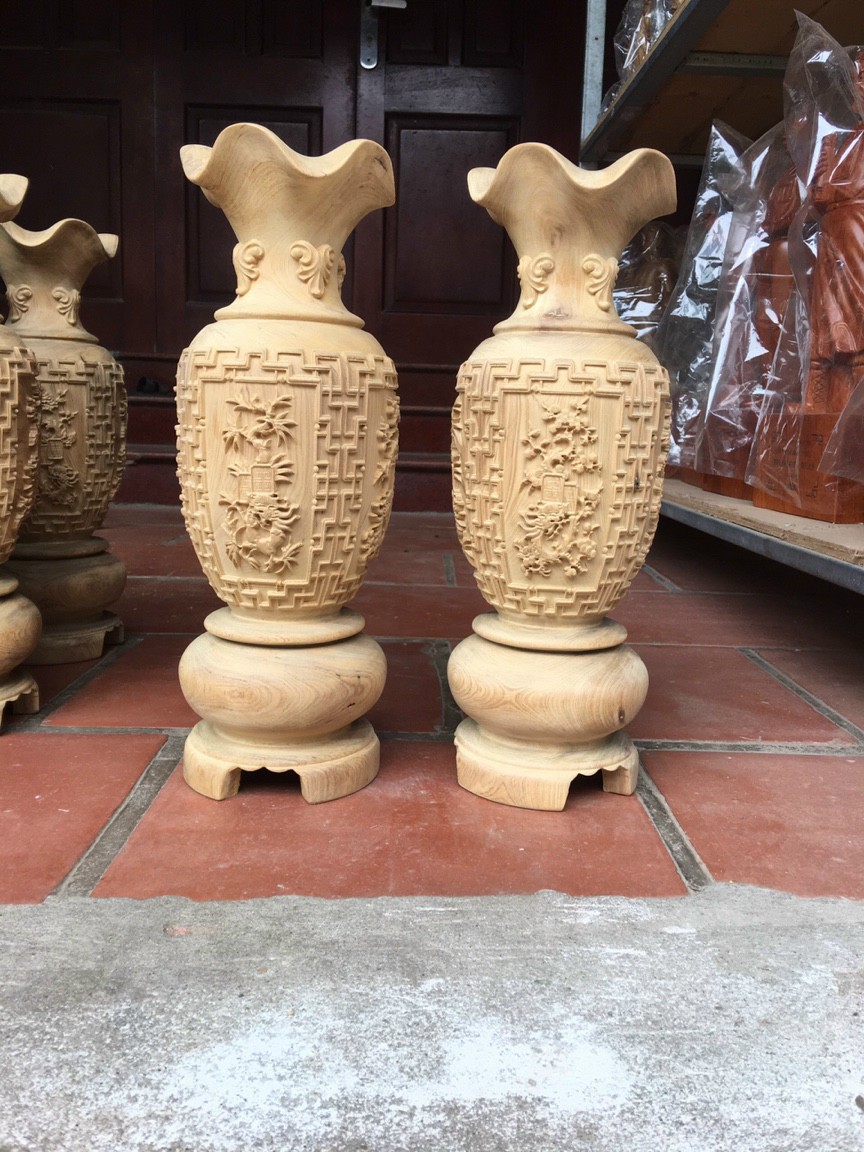 Cặp Bình Gỗ nu gõ hay gõ vẽ nu cao tròn đều đẹp cao 60cm x đk 20cm ý nghĩa bình an , phú quý Anh Chị trưng phòng khách nhà, công ty, bàn thờ